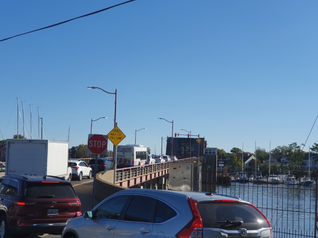 Wir erleben dann „unsere“ Brücke im offenen Zustand mal von der Landseite. Alles steht, damit ein paar blöde Segler ein- und auslaufen können! Wie schön! Hihihi!