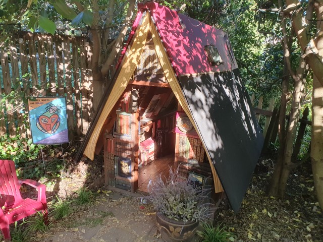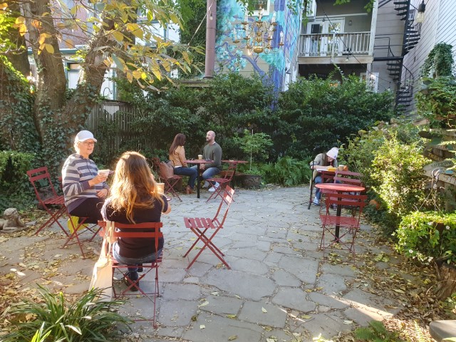 Nette Gässchen und nicht nur Halloween-Dekoration! Wir kehren dann in ein Bücher-Cafè ein. Sehr nett! Im buchgemäß dekorierten Garten genießen wir die letzten Sonnenstrahlen. Als die Sonne hinter dem nächsten Haus verschwindet, machen wir uns auf zum Capitol! Ja – haben die hier auch. Natürlich so spät am Tag geschlossen. Aber jedenfalls einmal drum herum!