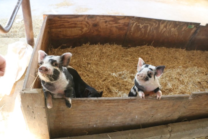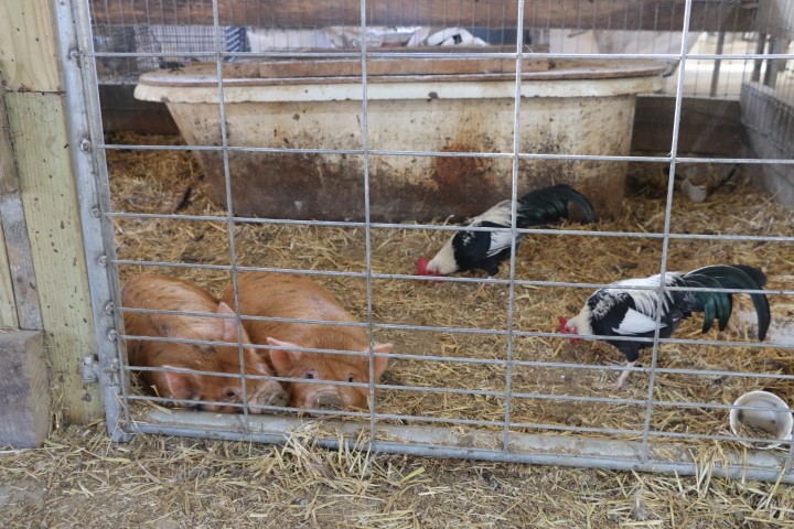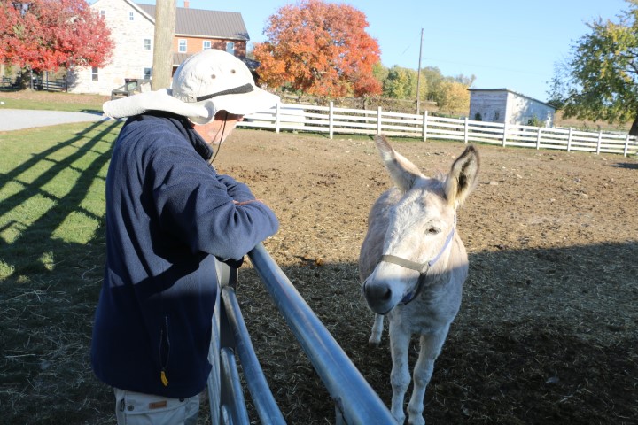 Und dann halten wir an einem Amish-Hof. Für Touristen mit Führung. Nur – nicht mehr gegen 17 Uhr. Wir schlendern ein wenig über den Hof und schauen in den Stall. Ein junger Mann arbeitet da – Ausmisten. Und er scheint sich zu freuen, die Arbeit für ein kleines Schwätzchen nieder zu legen. Aus dem kleinen Schwätzchen wird mehr als eine halbe Stunde. Wir fragen ihm Löcher in den Bauch. Wie groß so eine Amish-Gemeinde sei. (So rund 25 Familien, wächst es darüber, spalten sich einige ab.) Ob Amish inzwischen wählen. (Ja – ein recht großer Teil hat sich nach 2016 entschieden, dass man sich doch nicht so ganz aus der Politik raushalten sollte…) Und ja – er ist unverheiratet. (Kein Bart.) Und ja – wenn er geheiratet hat, dann wird er sich ein Bart stehen lassen! Persönliche und allgemeine Fragen werden besprochen. Und er ist sehr interessiert, wie wir hier her gekommen sind. Ach ja – er arbeitet als Schweißer und kommt dann nach Feierabend hier auf dem Hof mitarbeiten. Irgendwann sind wir durch mit unseren Fragen, haben alle Küken, Kälber, Ferkel, Katzen und Pferde gesehen und ziehen weiter.
