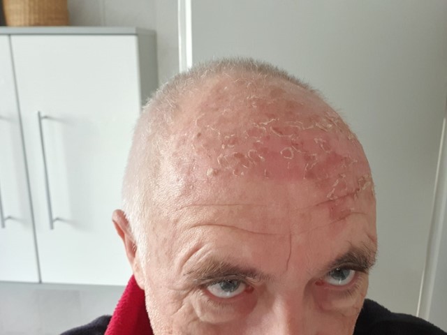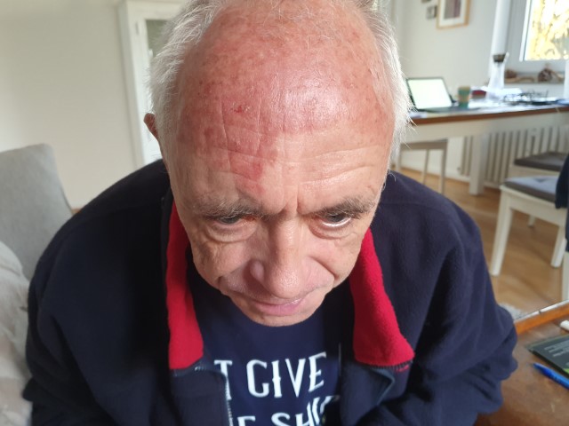 Und mehrfach wird sofort auch die Behandlung begonnen. Meine Schulter bekommt Stoßwellen, mein Kopf eine „Abbrandsalbe“. Damit das in der richtigen zeitlichen Abfolge passiert, werde ich mit Alu-Folie vor jeglichem Licht „geschützt“. Dann wird die Salbe mit Infrarot abgebrand und ich fühle mich die Tage danach wie eine Schlange….