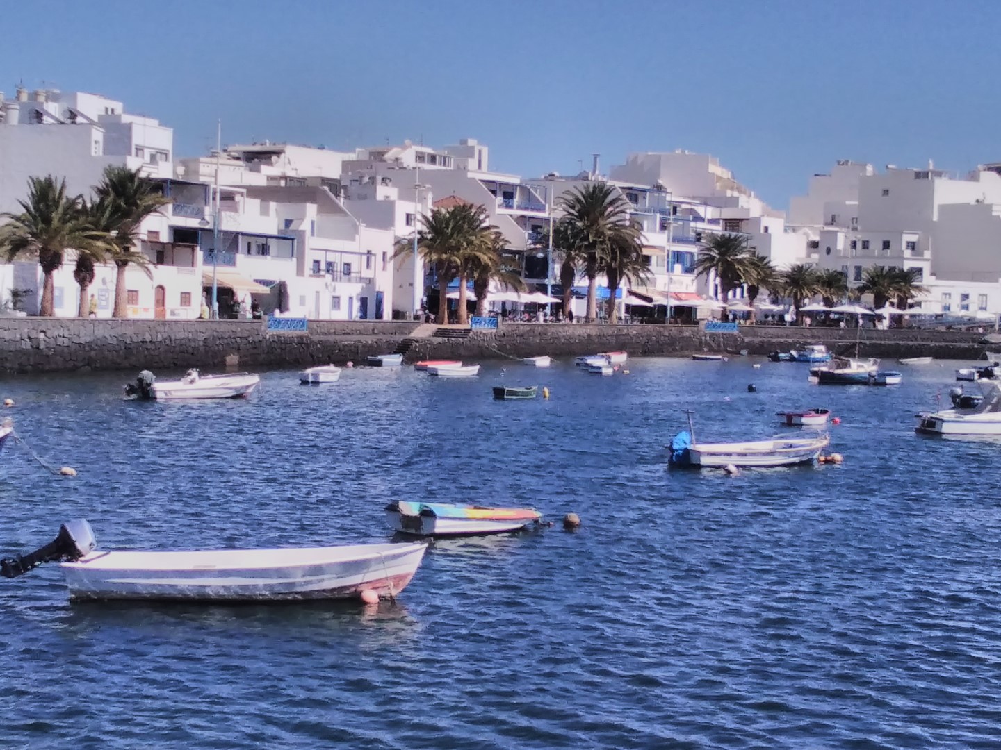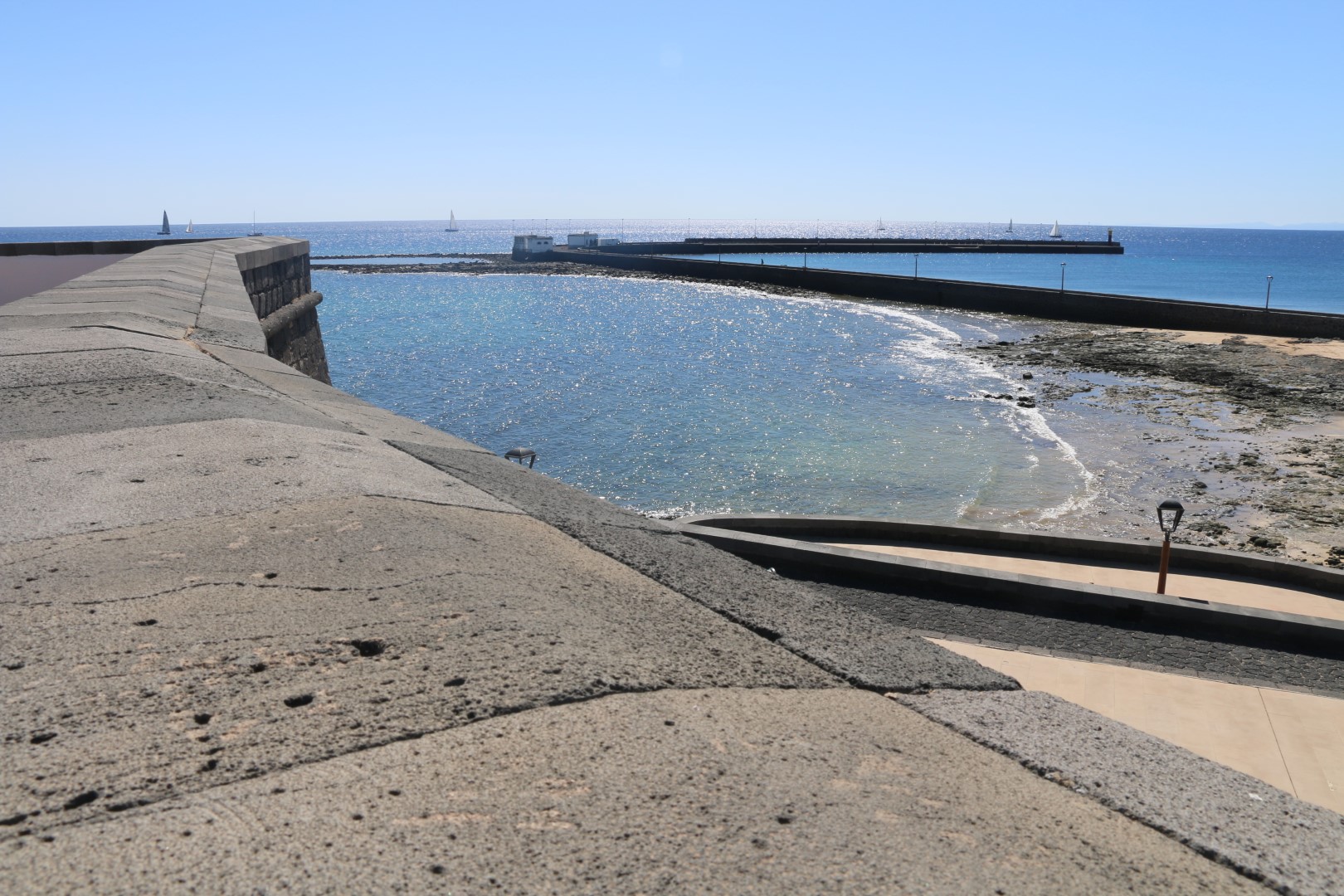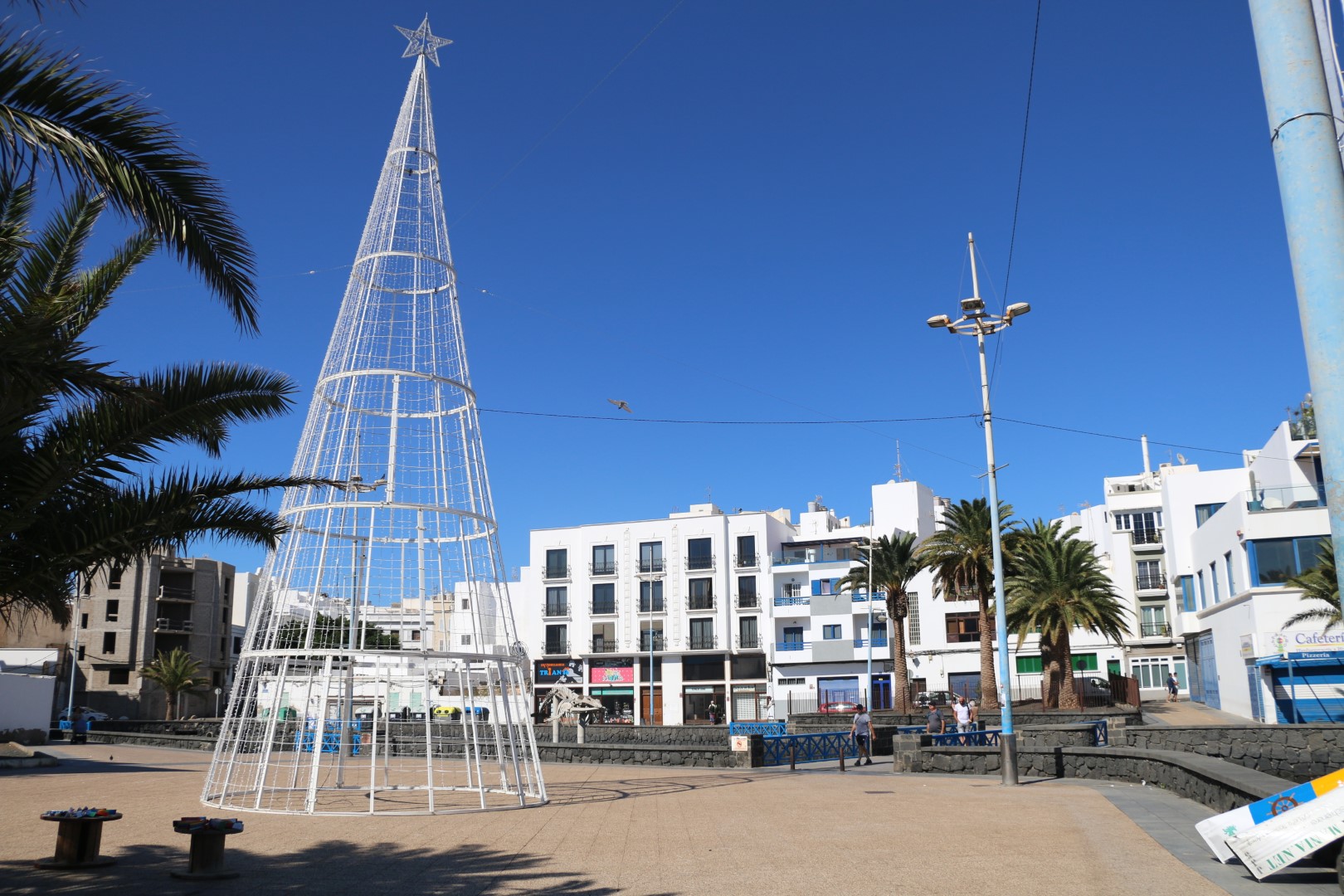 In Arrecife fällt mir gleich die weihnachtliche Straßendekoration auf, was für uns bei diesen Temperaturen einfach sehr ungewöhnlich ist. Ansonsten besichtigen wir die Lagune, Charco de San Ginés, die mit dem Meer verbunden ist. Dort schaukeln kleine, farbige Fischerboote in der Nachmittagssonnne und die Lagune ist mit kubischen Häusern in den Farben weiß und blau umrundet. Idyllisch. Danach besichtigen wir das Castillo de San Gabriel. „Diese Festung diente über Jahrhunderte als Bollwerk gegen die Angriffe der Piraten.“ Weiter zum neuen Hafen, in der Hoffnung dort einen Laden mit Yachtzubehör zu finden. Samstagnachmittags ist der allerdings geschlossen! Pech gehabt.