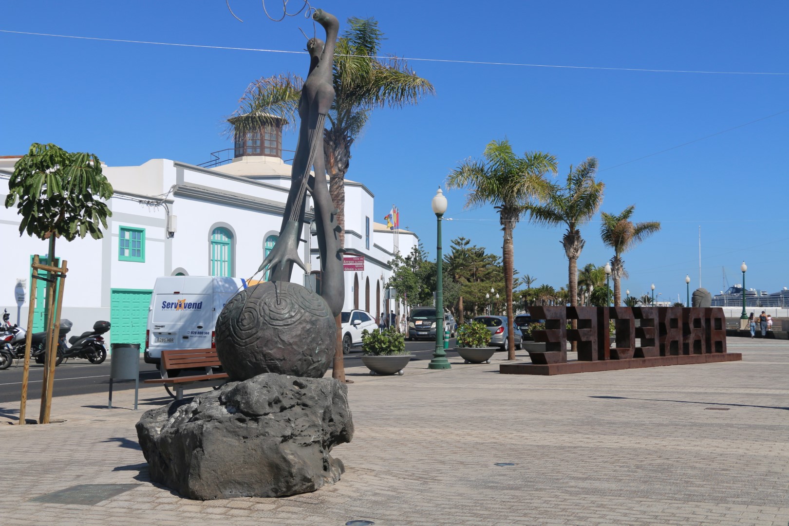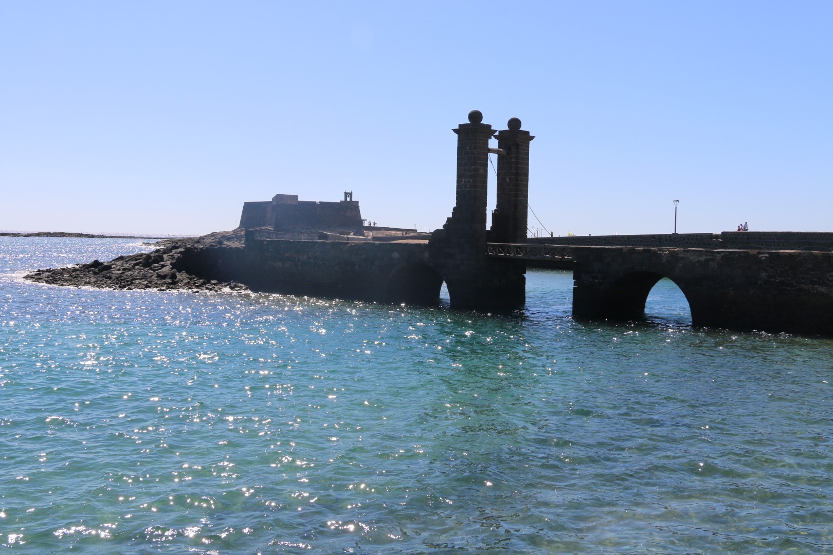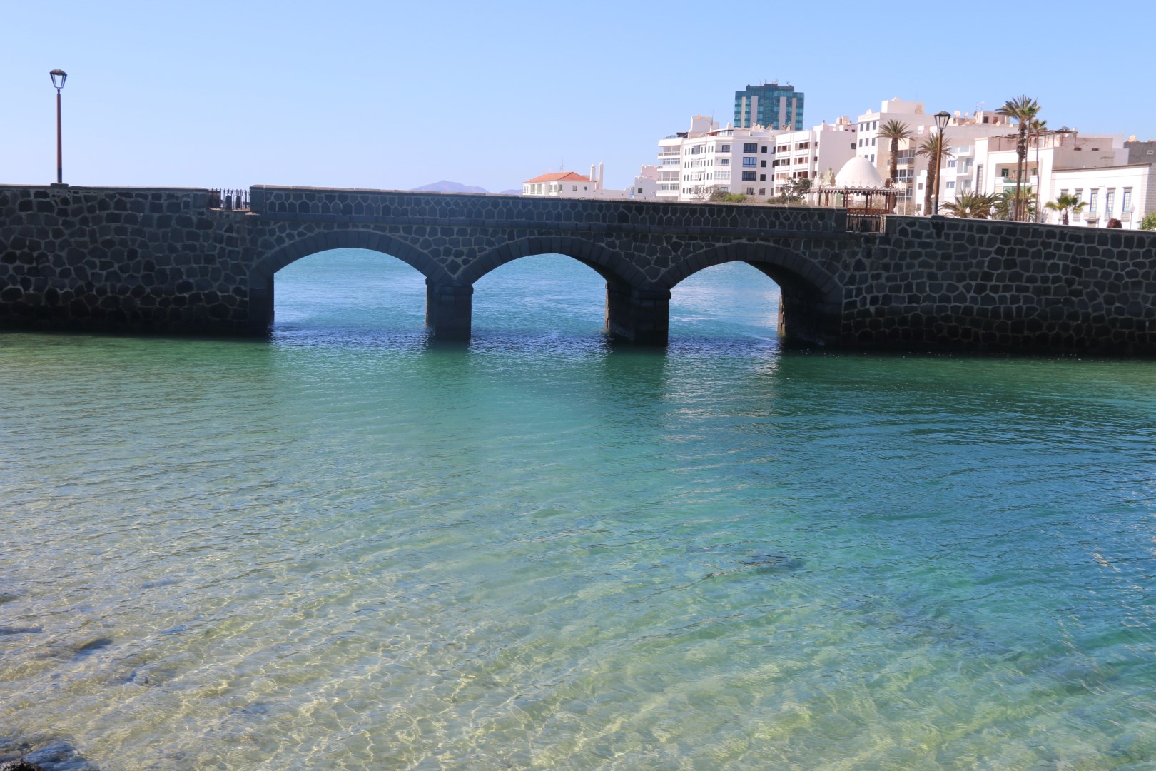 In Arrecife fällt mir gleich die weihnachtliche Straßendekoration auf, was für uns bei diesen Temperaturen einfach sehr ungewöhnlich ist. Ansonsten besichtigen wir die Lagune, Charco de San Ginés, die mit dem Meer verbunden ist. Dort schaukeln kleine, farbige Fischerboote in der Nachmittagssonnne und die Lagune ist mit kubischen Häusern in den Farben weiß und blau umrundet. Idyllisch. Danach besichtigen wir das Castillo de San Gabriel. „Diese Festung diente über Jahrhunderte als Bollwerk gegen die Angriffe der Piraten.“ Weiter zum neuen Hafen, in der Hoffnung dort einen Laden mit Yachtzubehör zu finden. Samstagnachmittags ist der allerdings geschlossen! Pech gehabt.