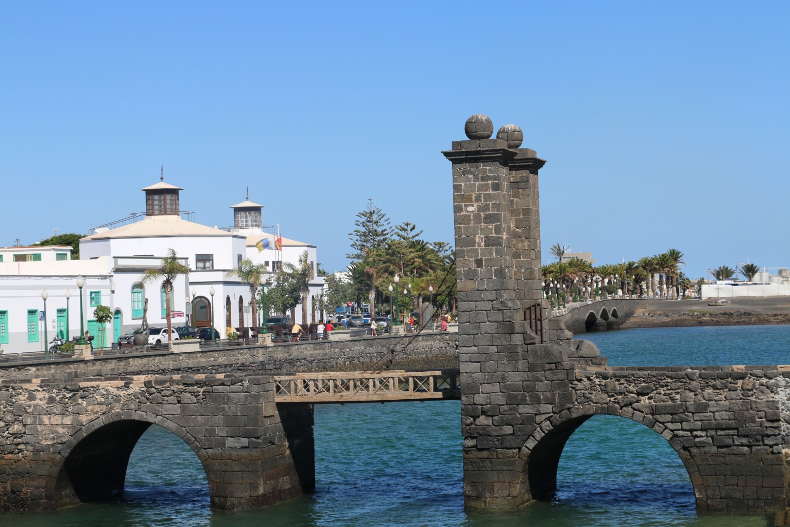 Also heute per Bus. Während des Hochastens zur Bushaltestelle kommen Chrischan Zweifel, ob er die App richtig „gelesen“ hat: Abmarsch 10:28 oder Bus kommt um 10:28 …… Natürlich ist es: Bus kommt um diese Uhrzeit. Außerdem weicht der Fahrplan im Bushäuschen von dem von unserer App ab. Egal, eine ¾ Stunde bis zum nächsten Bus wollen wir nicht warten und latschen wieder runter zum Hafen, um schnell einen Kaffee zu trinken. Dann fix wieder hoch. Es stellt sich heraus, dass die App die richtigen Uhrzeiten hat …… und wir noch etwas länger hätten im Café bleiben können. Die Tickets muss man im Bus nehmen, aber man kann weder ein Hin- und Zurück-Tickets kaufen noch Tickets bis ganz zum Ziel, wenn die Fahrt ein Umsteigen beinhaltet. Also Tickets immer nur für die jeweilige Busfahrt. Naja, gibt Schlimmeres. Was witzig ist, ist, dass die beiden Teilstrecken nach und von Arrecife unterschiedliche Preise haben – und zwar ist die längste Strecke die billigste!