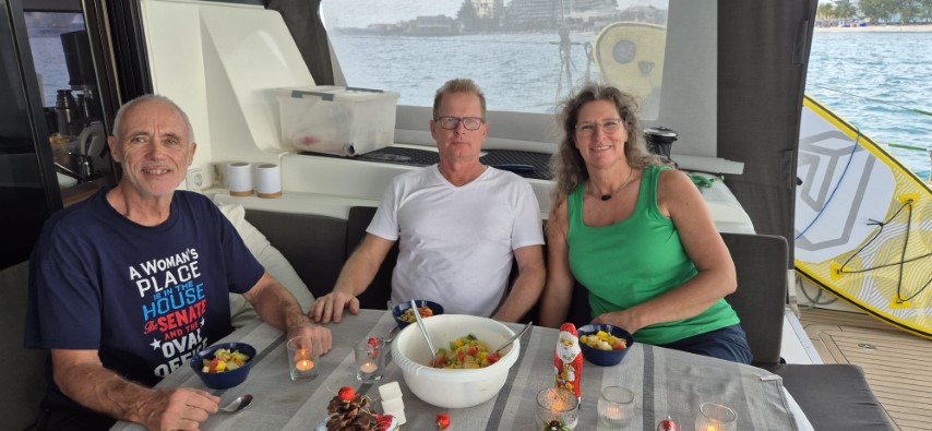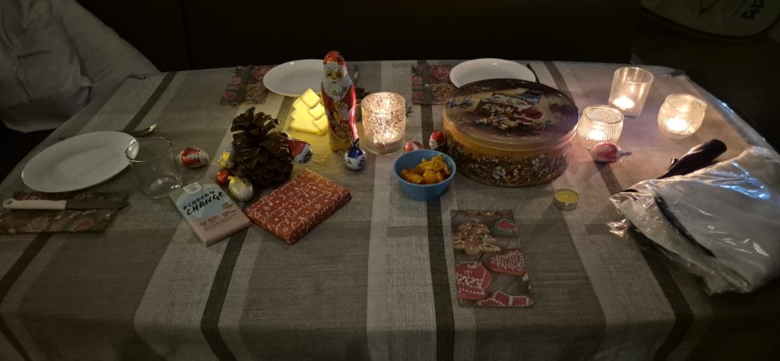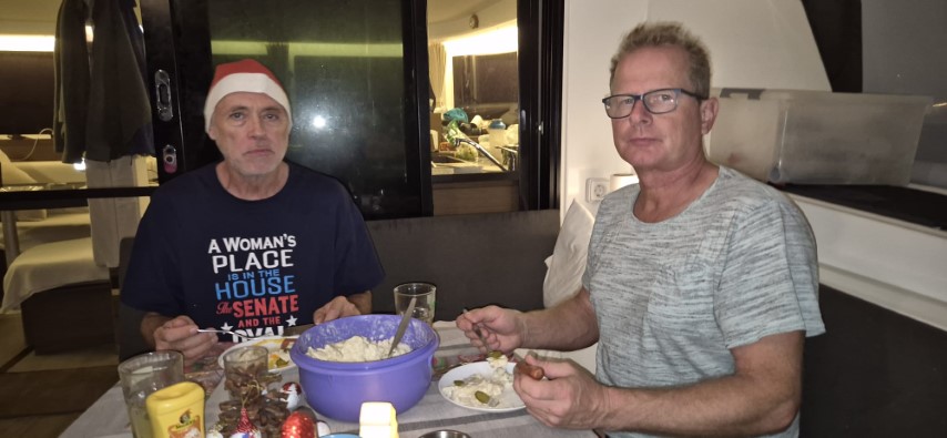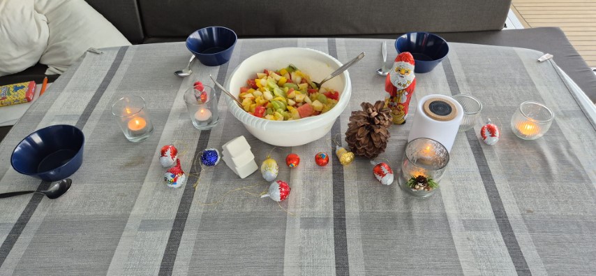An Bord gibt es dann Bescherung und Weihnachtsessen. Wohl typisch in vielen Familien: Würstchen an Kartoffelsalat.