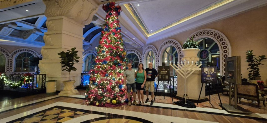 An Bord gibt es einen weihnachtlichen Obstsalat. Dann geht es bald darauf ins Atlantis zur „Parade“. Wir fahren so früh, dass wir noch durchs Kasino und ein wenig durch das Aquarium spazieren können. Dann kommt die „große“ Parade! Melanie ist begeistert. Filmt und fotografiert wie eine Wilde.