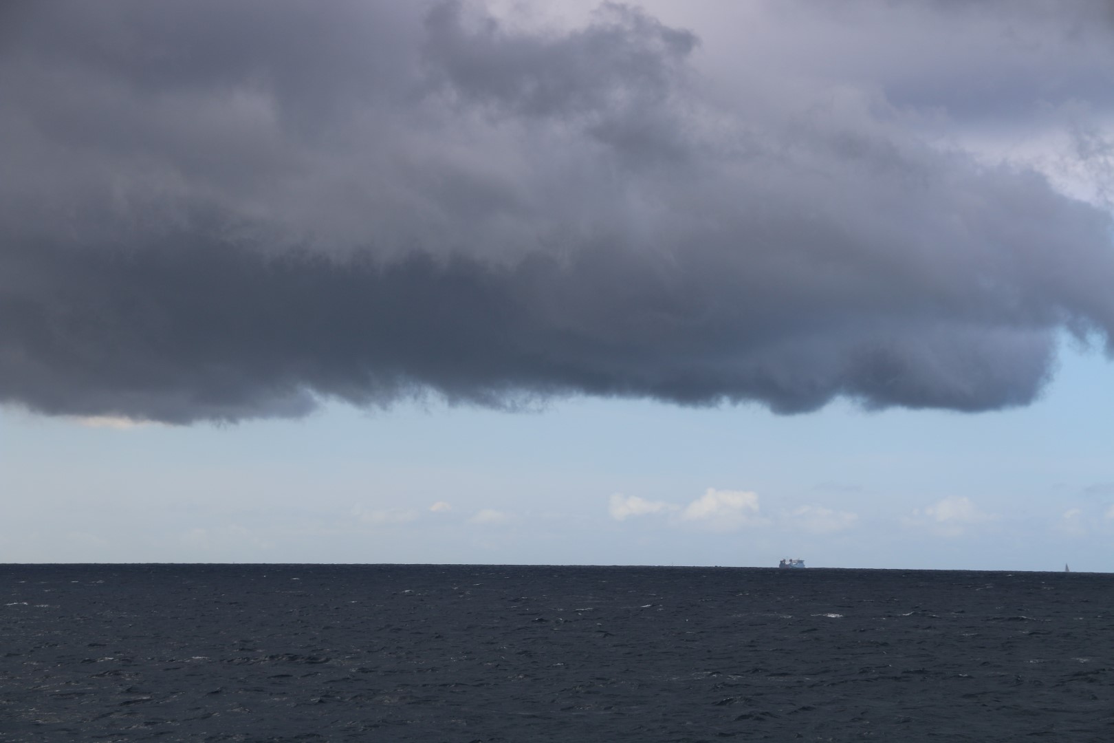 Also haben wir mittags den Anker gehoben und sind los. Doch schon nach ein paar Meilen ist der Wind auf frische 25 Knoten hoch. Wollten wir wegen schwachen Winden doch den ParaSailor setzen, so wird der wieder schön in seiner Vorpiek verstaut und das Groß gleich mit Reff 1 gesetzt. Da machen wir teils flotte Fahrt mit über 8 Knoten.