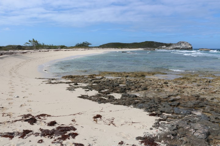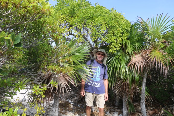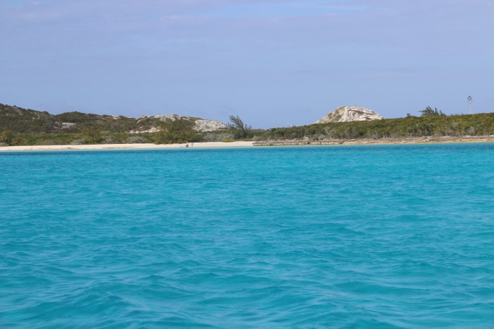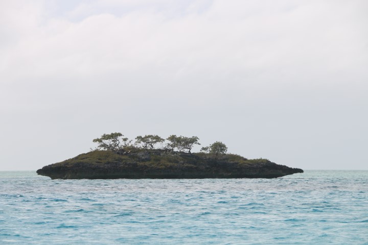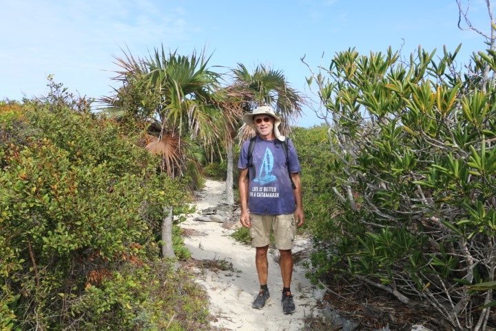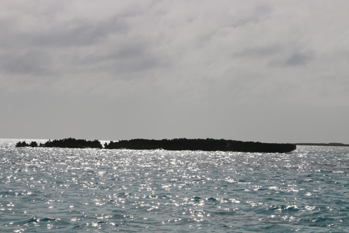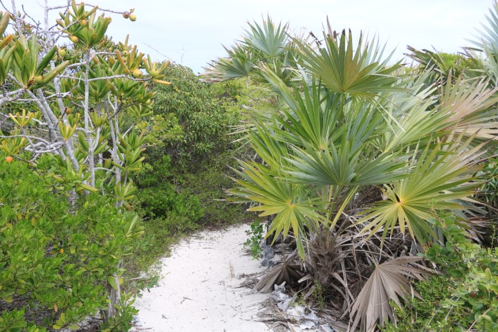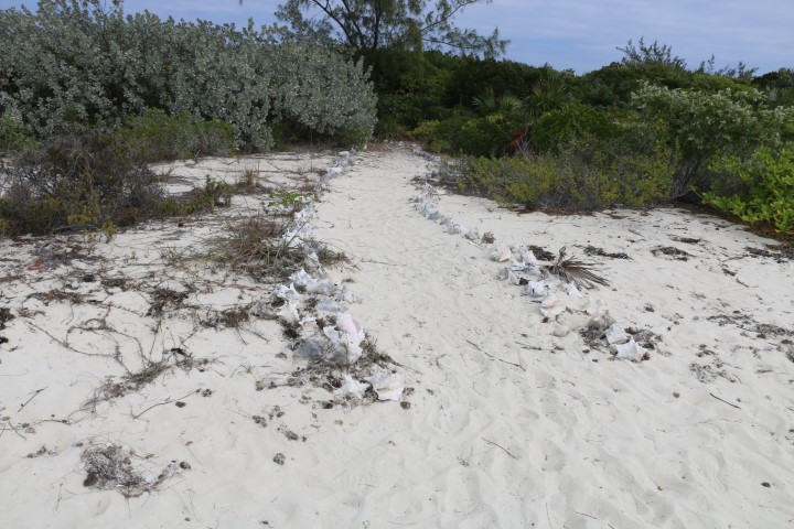 Und nun beschließe ich: Heute noch wird das Projekt „Flachwasser-Modus“ angegangen! Inzwischen sind wir angelandet. Und siehe: Ein Conch-markierter Weg führt ins Landes- äh – Inselinnere. Das muss es sein! Und es ist der Weg! Wenige Minuten später stehen wir auf der Ostseite von Little Bell Cay und können uns nordwärts zu den „Bergen“ wenden.