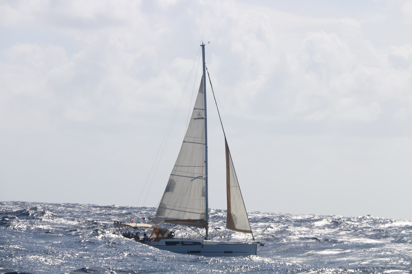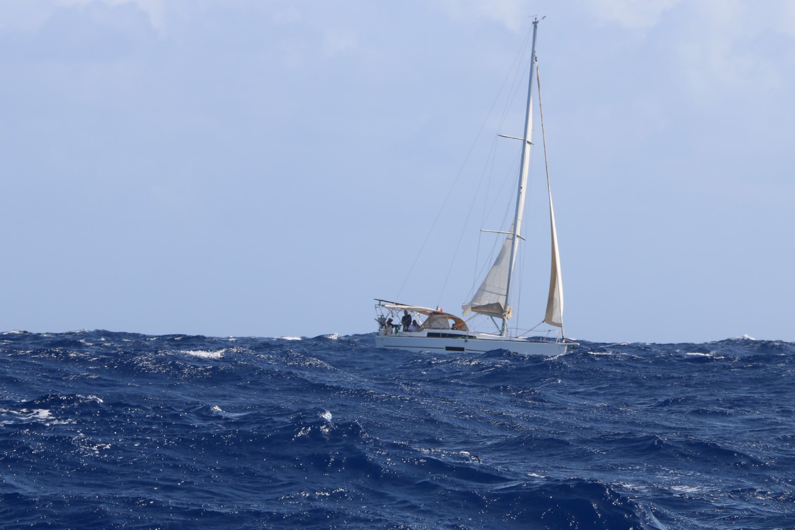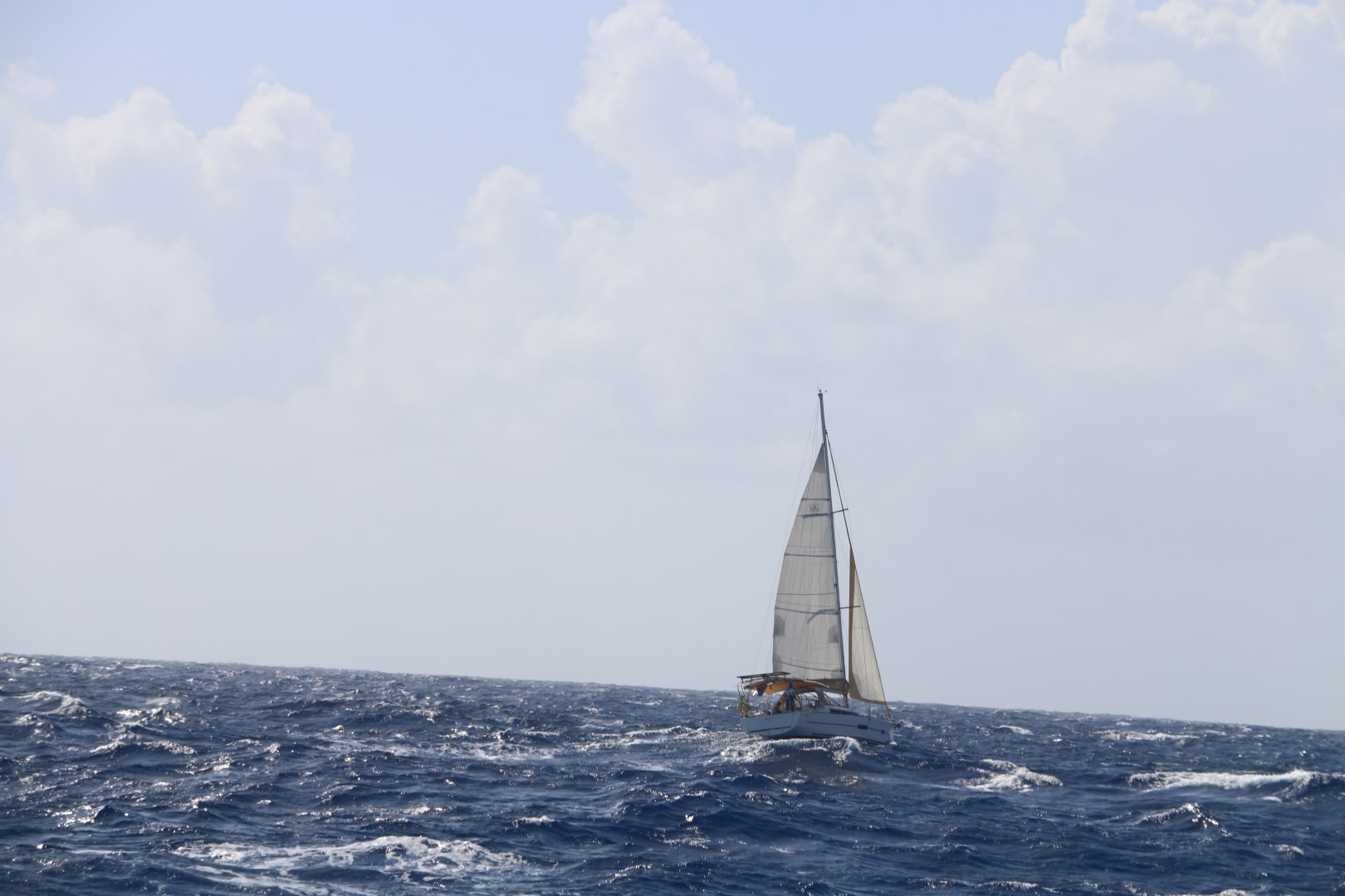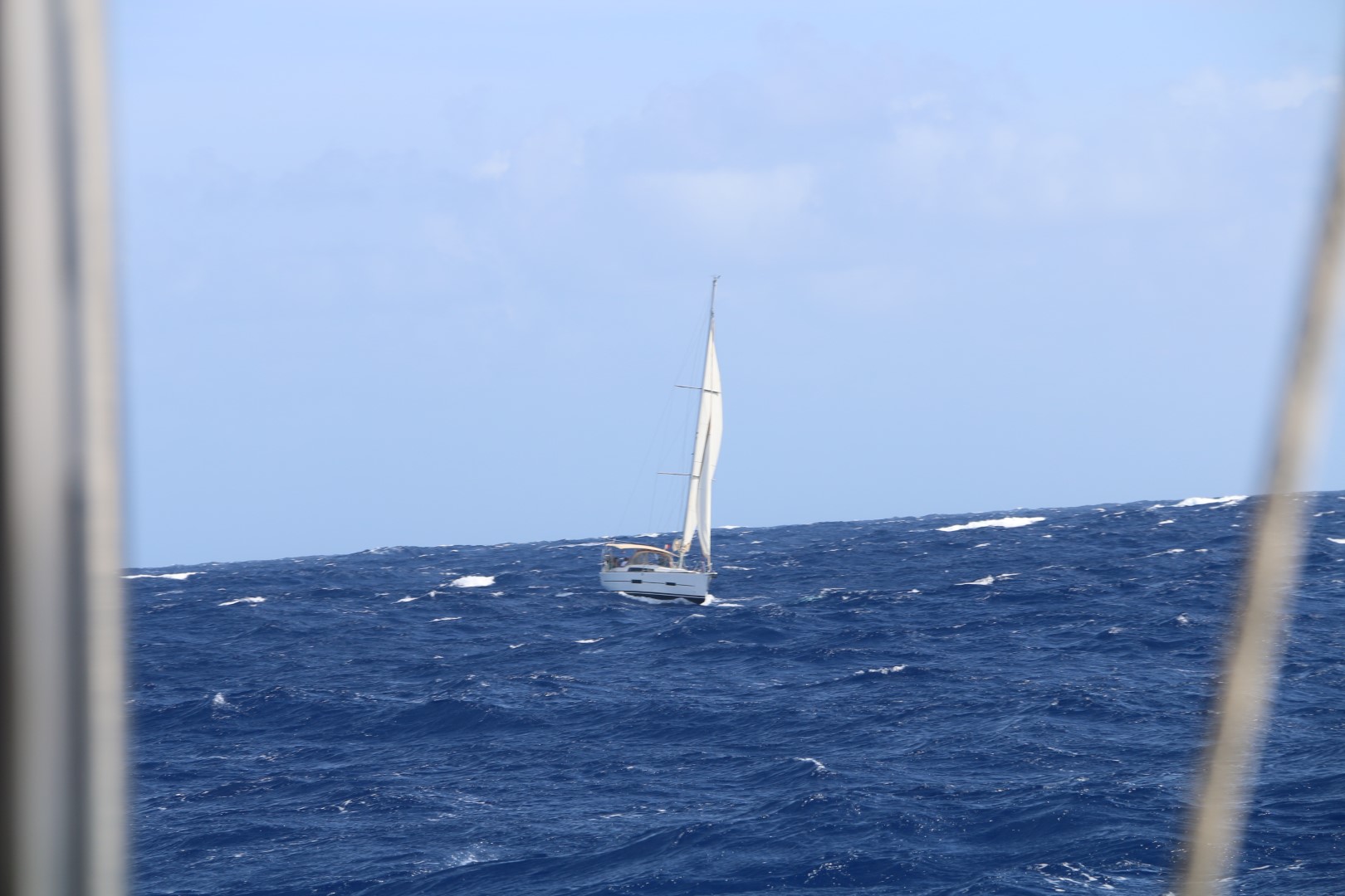 In der Nacht - so gegen 5 Uhr sind sie dann fast 15 Meilen voraus. Wir schaukeln lieber etwas weniger und machen uns keine Arbeit mit dem Groß. Auch so bekommen wir die 120 Meilen am Tag zusammen. Auf Michèles Wache geht eine Böe mit 36 Knoten durch, da wäre wieder Reffen angesagt. So dreht sie die Fock mit dem eFurler einfach ein wenig ein und muss mich nicht wecken. Auch in meiner Wache geht es immer wieder mal über 30 Knoten. Ich lasse das Reff einfach in der Fock. Mit 5,5 bis 6,5 Knoten sind wir nicht so schnell wie die Anderen, aber wir sind auch nur zu zweit. Und wollen wohl ausgeschlafen sein.