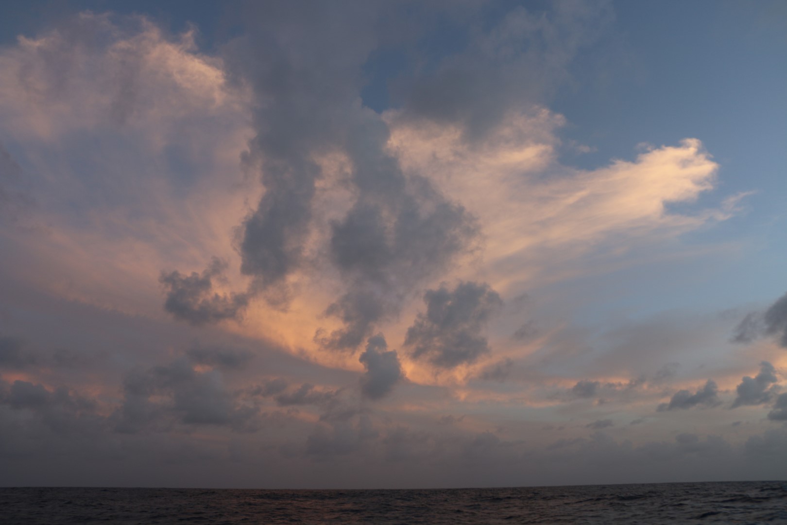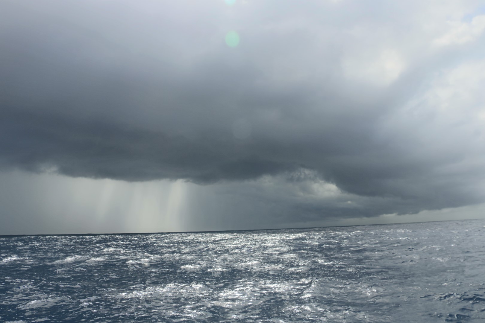 Gestern den ganzen Tag und die Nacht davor mussten wir häufig Regenwolken ausweichen. Aus Angst vor plötzlich hereinbrechenden Böen. Beim Parasailor ist das halt so ein Ding, da man den eben nicht so schnell runter hat wie die Fock. Um die Regenwolken zu checken, habe ich dann nachts alle 20 Minuten das Radar eingeschaltet um Ausschau zu halten.