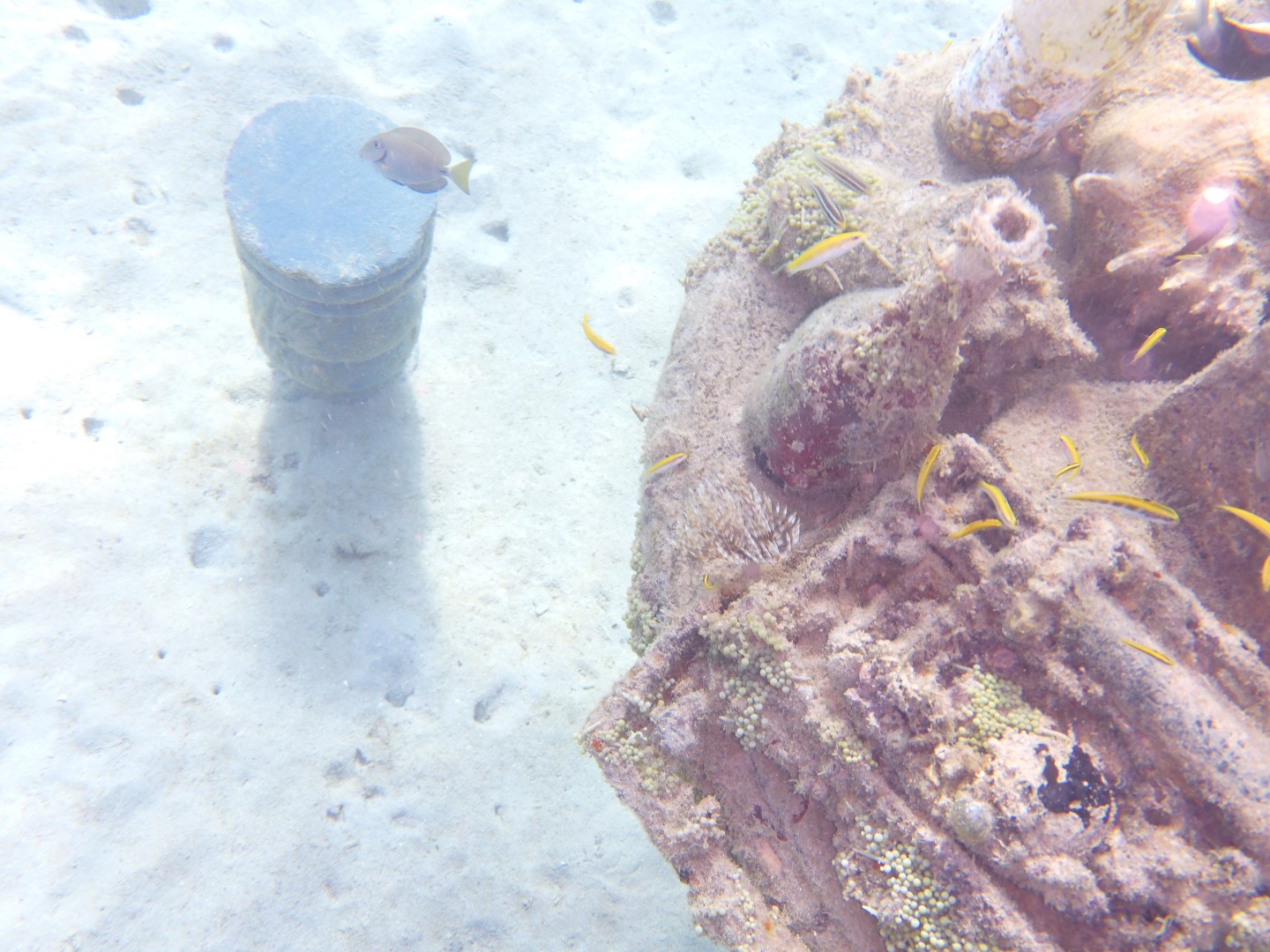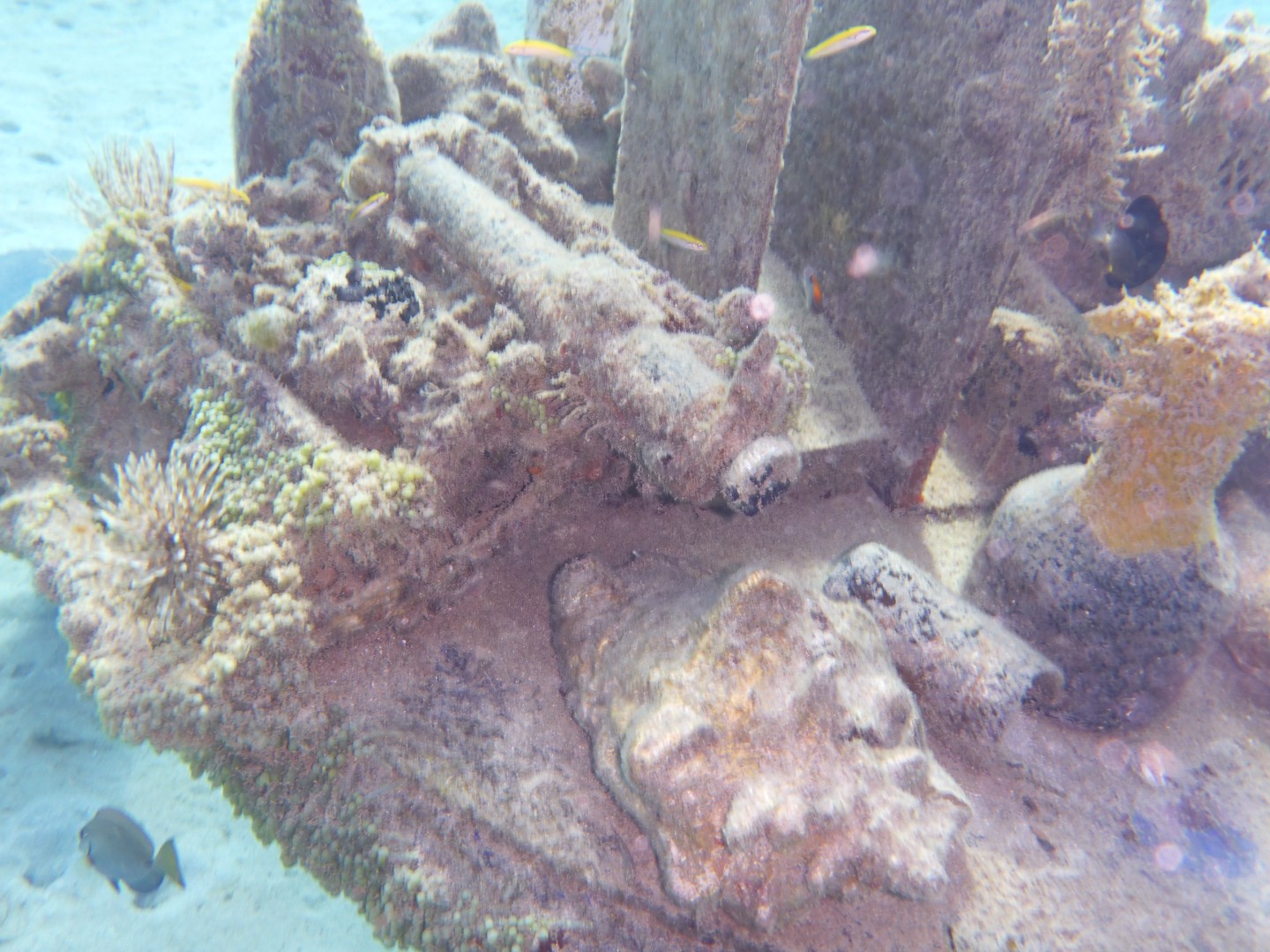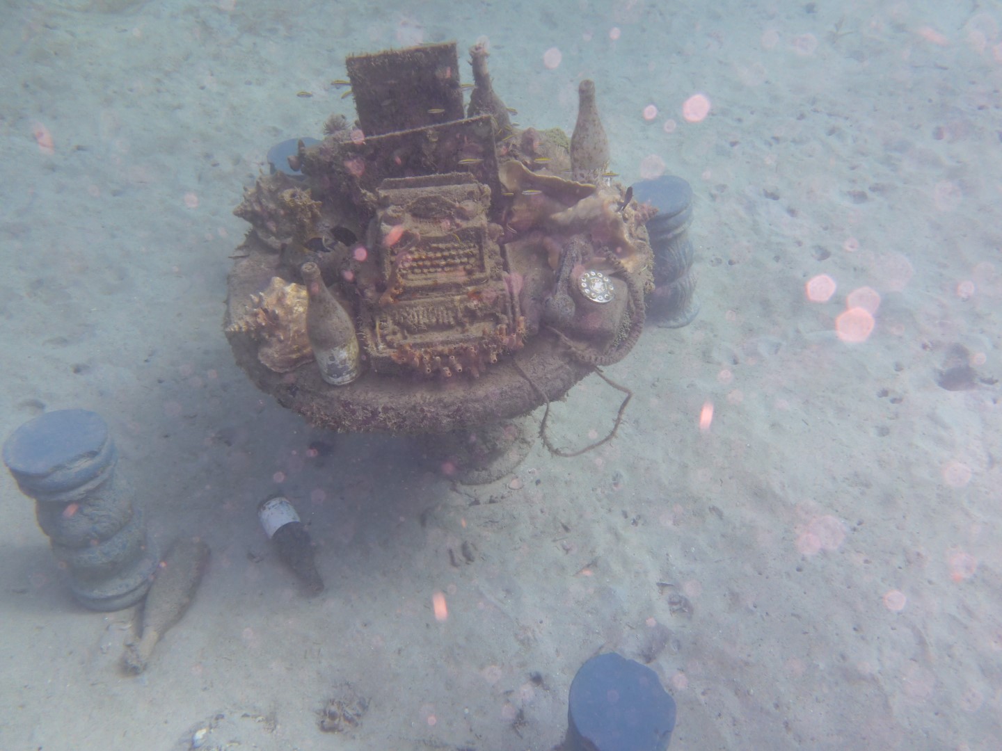 Doch heute war die Unterwassersicht wieder prima. Vielleicht so gut wie noch nie. Und dann entdeckt man Sachen! Ok - ist ein Gimmick für die tauchenden Touris. Aber hat doch Spaß gemacht. Wie aus dem "Oooops" ein "Ah" wurde habe ich versucht in der Bilder-Reihe darzustellen.