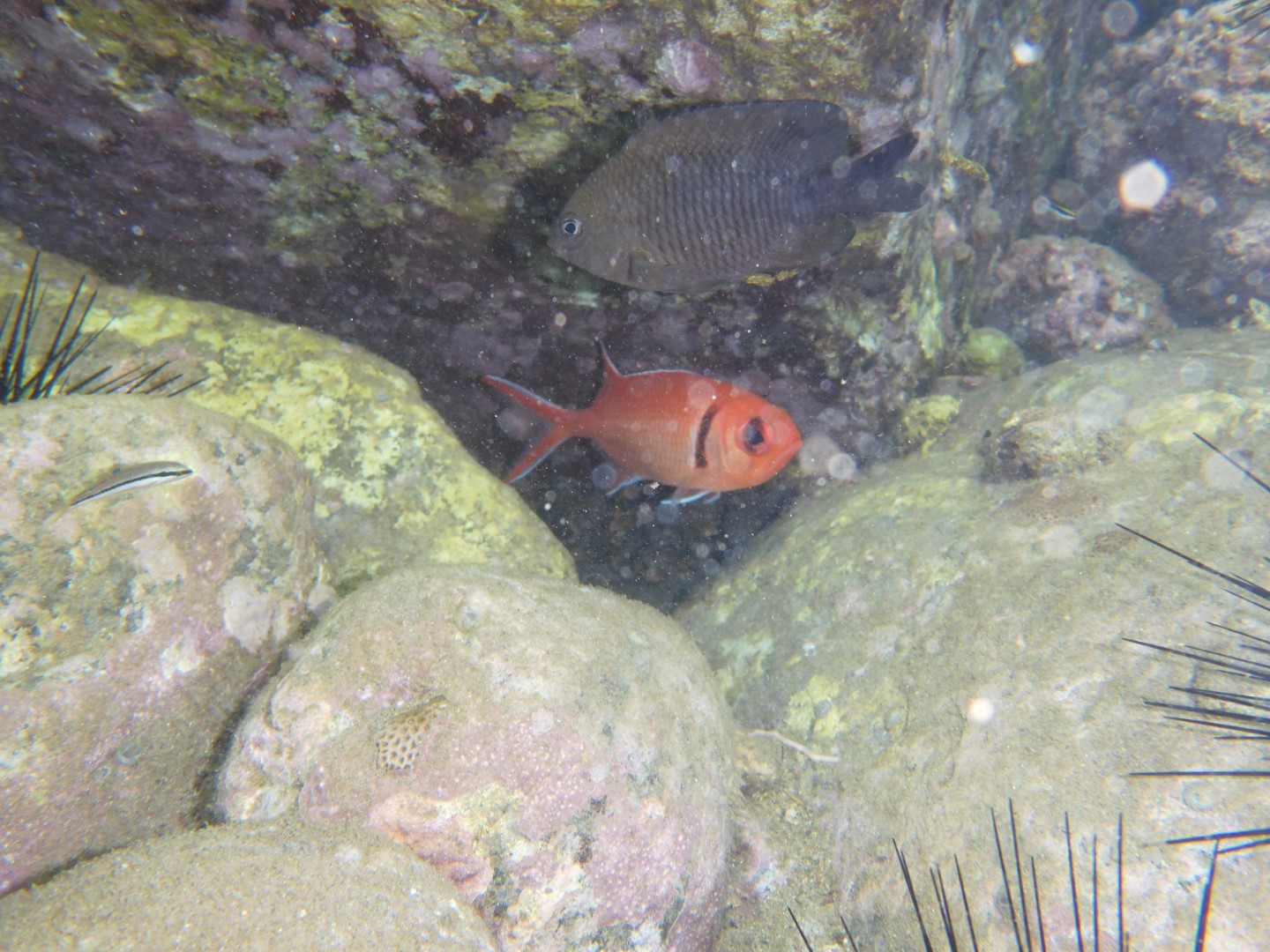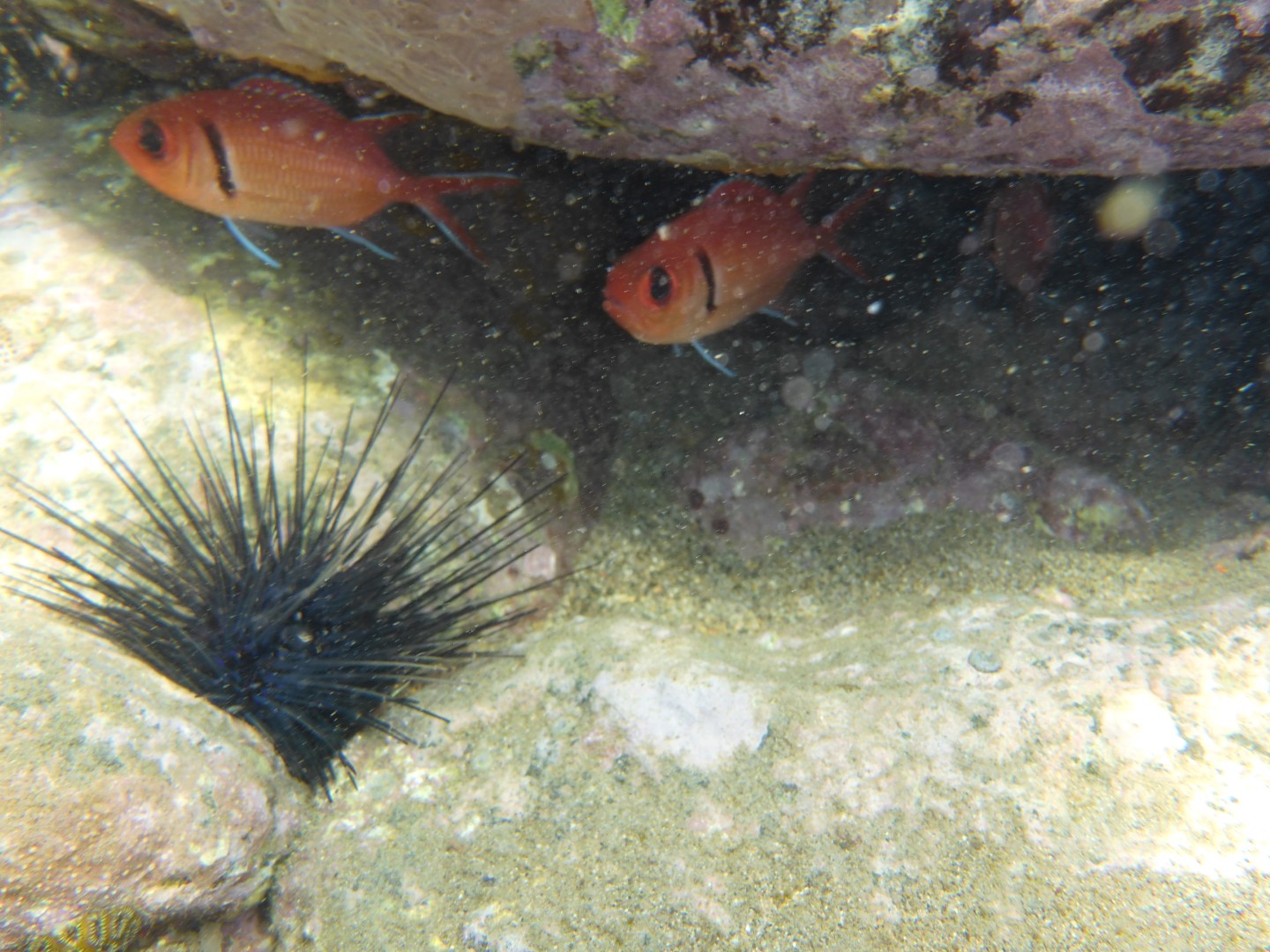 Angekommen sind wir dann ziemlich zügig ins Wasser gesprungen. Mussten ja die neuen Ufer erkunden. Nicht viel neuen Fisch. Aber rein von der Kopfzahl eine unglaublich große Menge an Fisch gesehen.