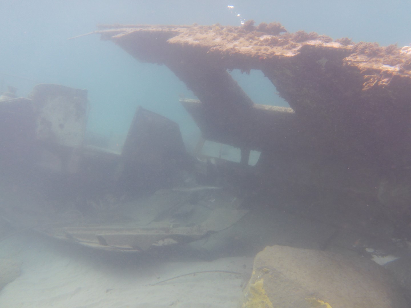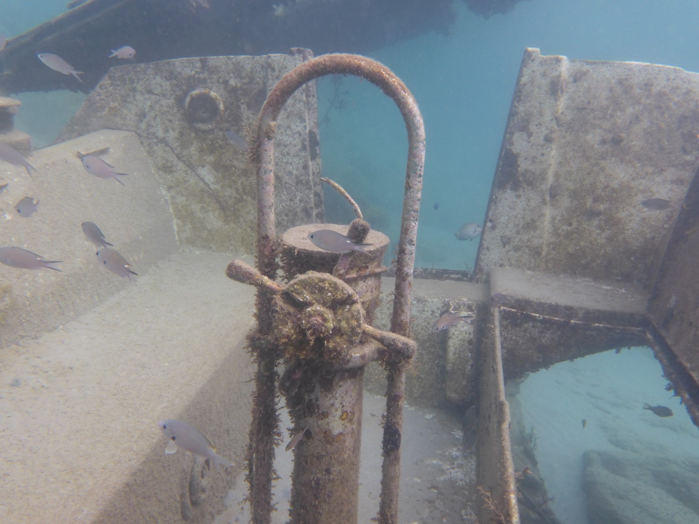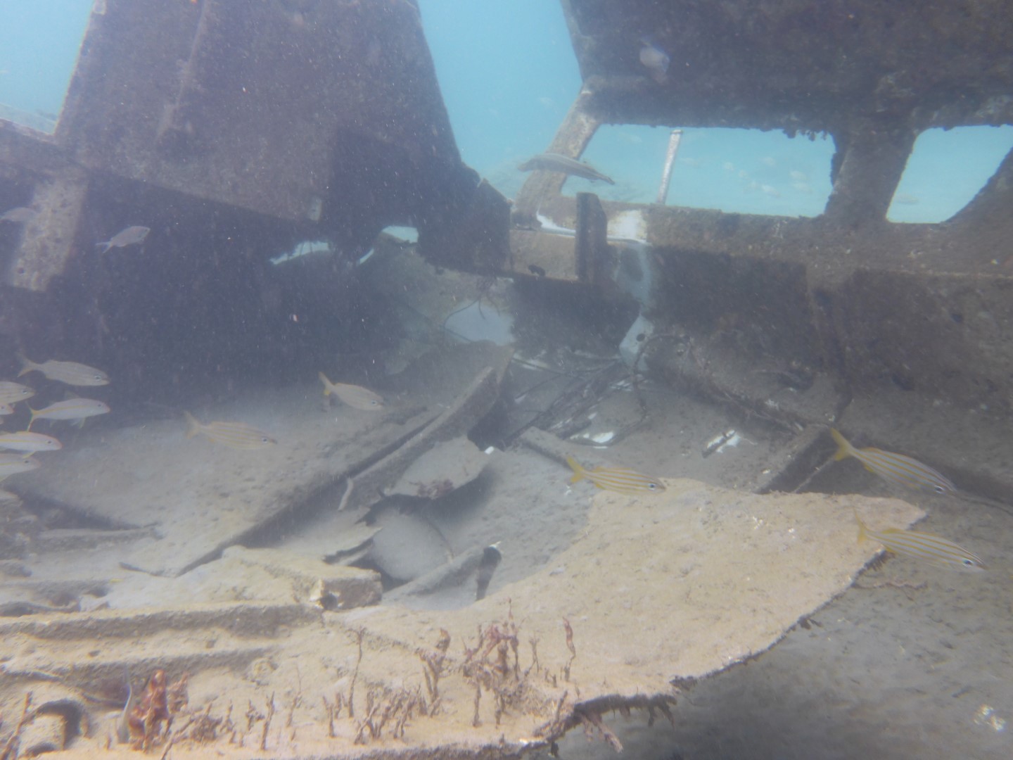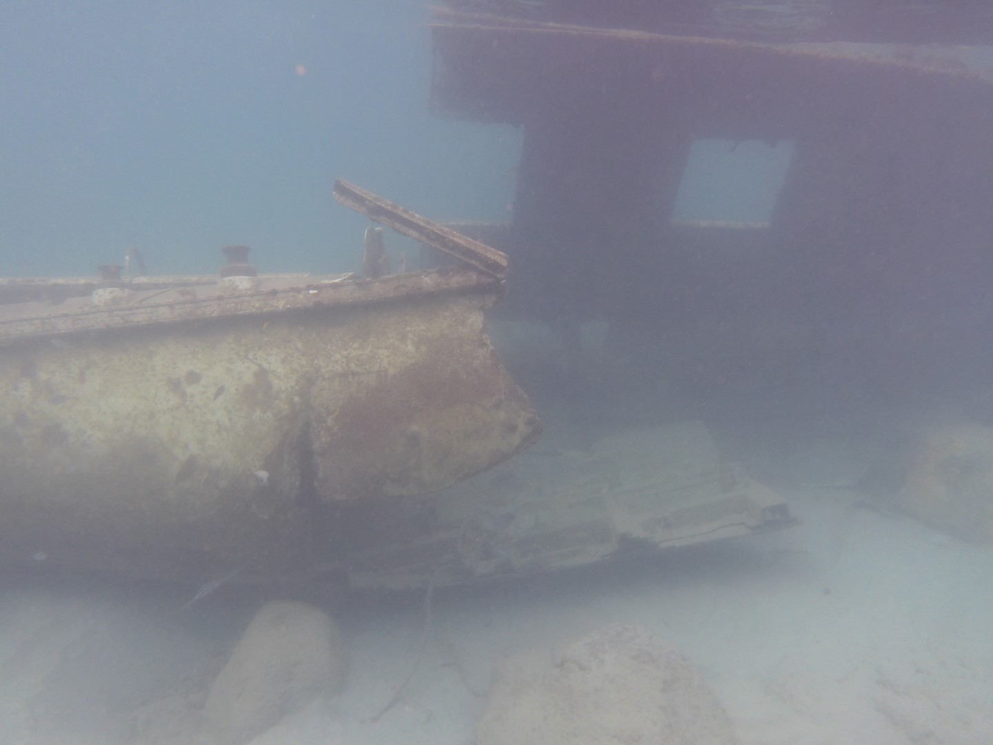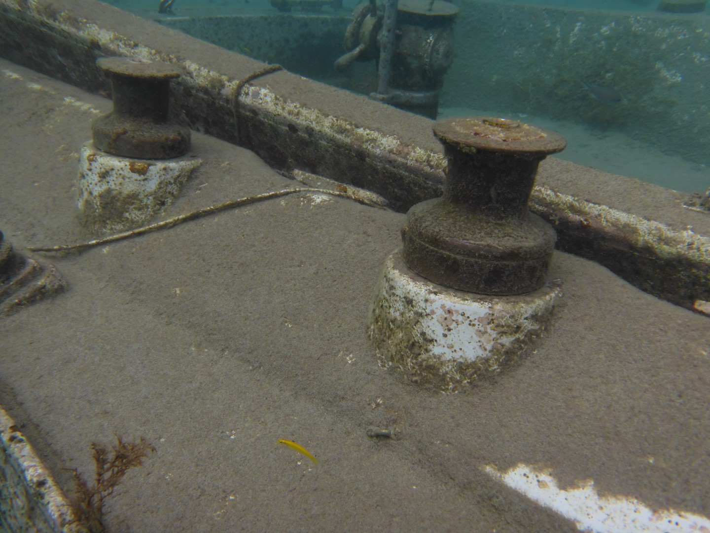 Zurück fahre ich gleich bis zu Michèle. Die weiß zu berichten: Als die Tampen, die wir in der Rodney Bay gesehen haben, die sind wirklich für die Korallenanzucht. Hier wieder und hier eindeutig. Und sieh hat ein Wrack gefunden. Eine vielleicht 35 Fuß lange Segelyacht. Oder eben, was davon übrig geblieben ist. Siehe Fotos!