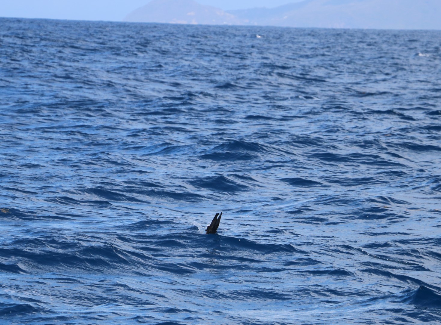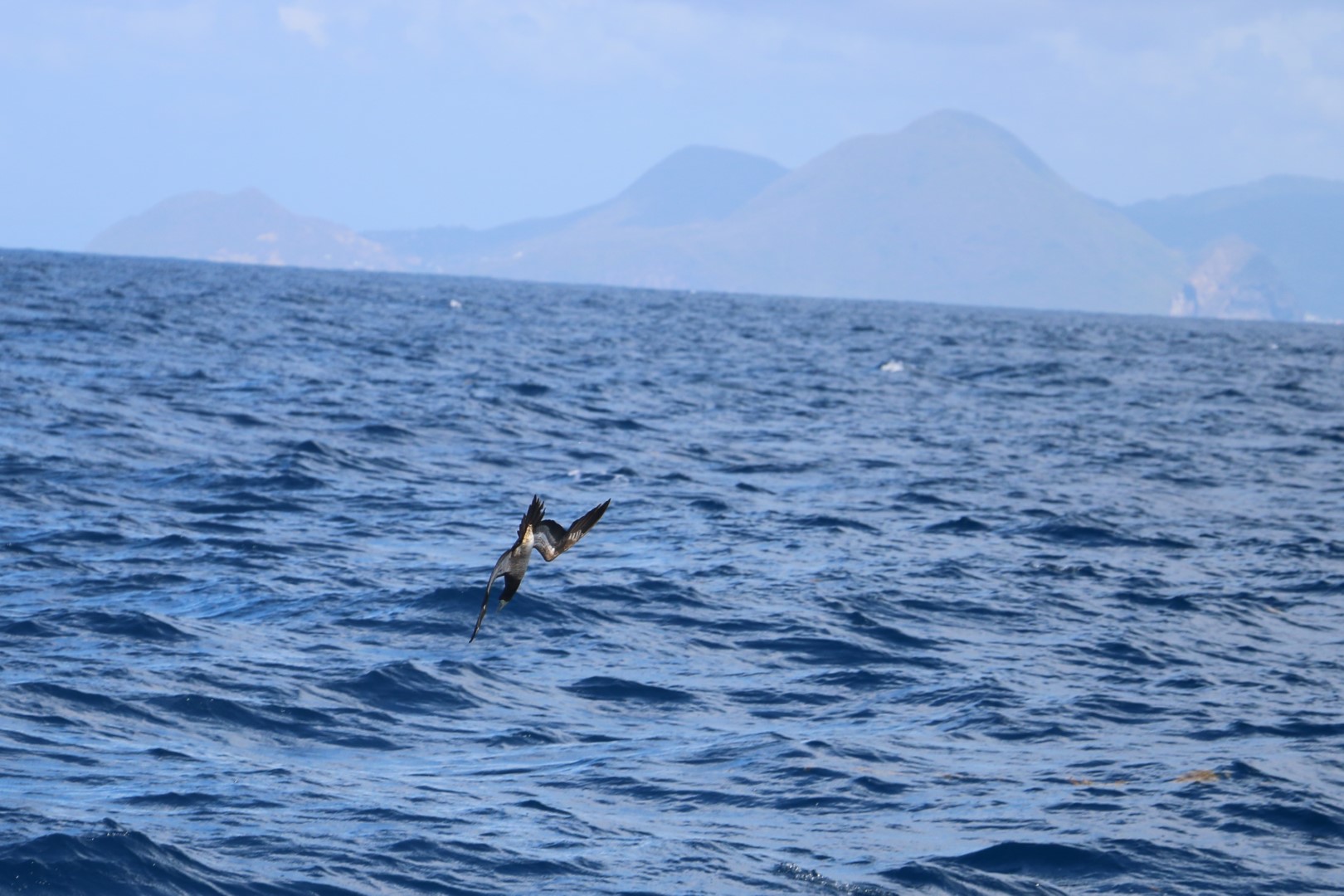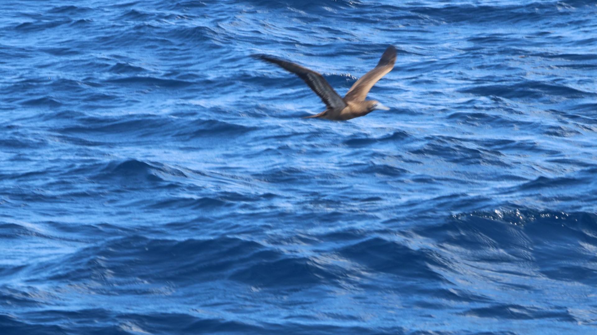 Wir müssten so um die 15° laufen. Der Wind kommt irgendwo aus 70° bis 90°. Damit können wir zwar das Ziel anliegen, aber die Abdrift treibt uns doch eher auf 355° bis 000°. Aber erst mal können wir 20 Meilen laufen. Wieder begleiten uns Seevögel – wie auf dem Schlag von Suffrière nach Rodney Bay. Sie kommen herangeflogen, gehen in Luv in den Bereich des Überdrucks und lassen sich so auf 5, 6 Meter hochtragen. Dann spähen sie nach Lee. Und wenn etwas Fischiges zu sehen ist, zischen sie ab und machen den Sturzflug ins Wasser. Manch ein Mal kann ich dann beobachten, dass es schon Erfolge gibt.