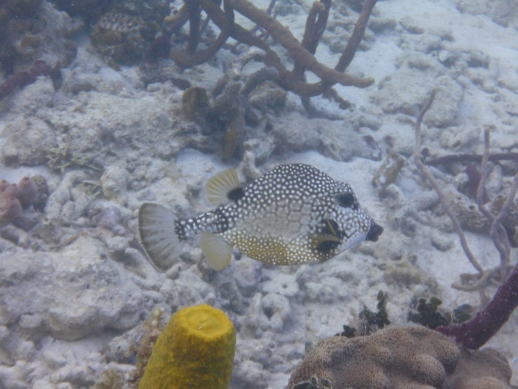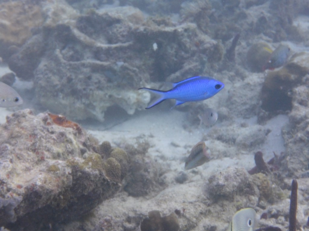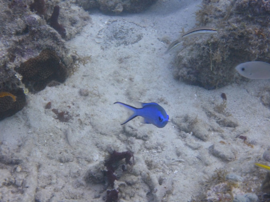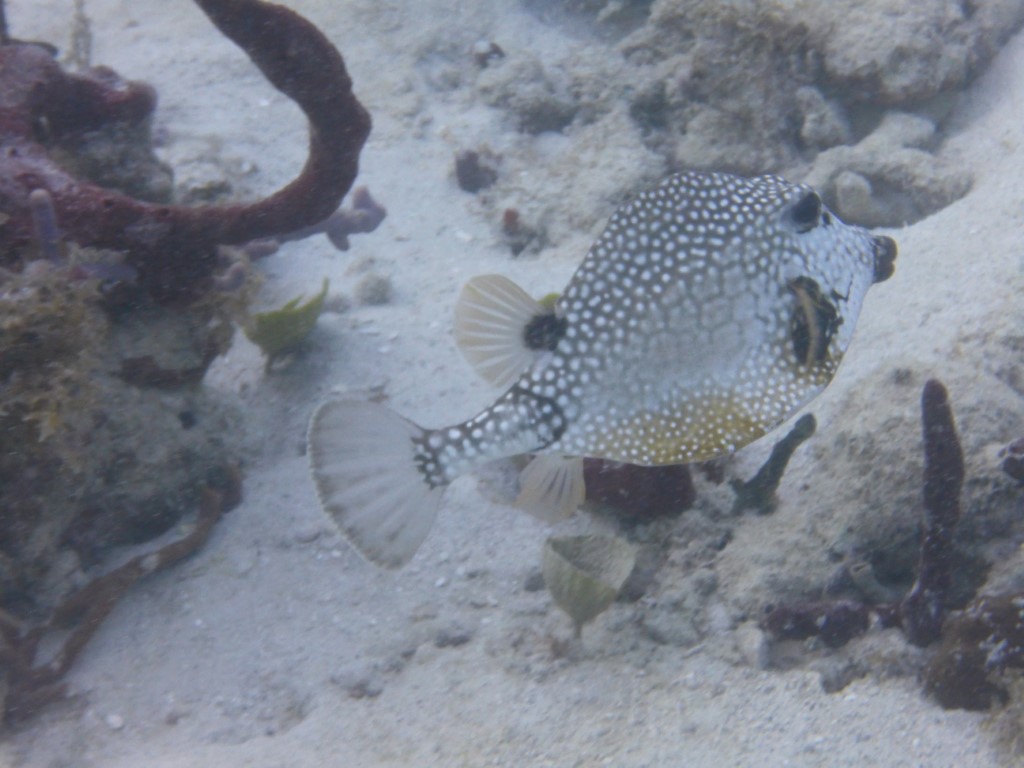 Auch eine Bäckerei ließ sich finden und so war ich dann bald wieder an Bord. Nach einer Runde Schwimmen kam dann ein „Installations-Tauchgang“. Das neue Paket wurde erst mal richtig eingestellt, alle Gurte so gespannt, dass es mir beim nächsten Tauchgang nicht wieder hinterher schwimmt, sondern schön auf dem Rücken sitzt. Dann wurde ent-bleit. Ich hatte bei dem Wrack-Tauchgang viel zu viel Gewicht mit. Jetzt kann ich mit ganz wenig Luft austarieren. Und wo ich schon den Kopf unter Wasser hatte, wurde gleich eine Foto-Session mit den hier anwesenden Fischlein gemacht. Und es müssen ja auch ein paar Fotos zum Beitrag…. Und dann habe ich noch den Steuerbord-Rumpf gesäubert. Fein sieht er jetzt aus. Und wie wird es nach dem Hafen-Aufenthalt??