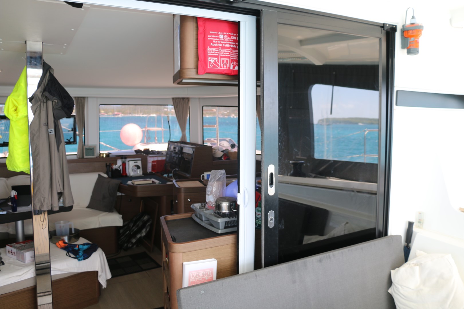 Den Nachmittag vergnüge ich mich dann mit dem Einbau einer Insekten-Tür. Gelingt mir so gut, dass Michèle am nächsten Morgen durch die geschlossene Tür rennt. Das wird sie nicht allzu oft aushalten. So stabil ist das dann doch nicht….