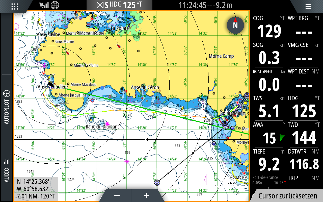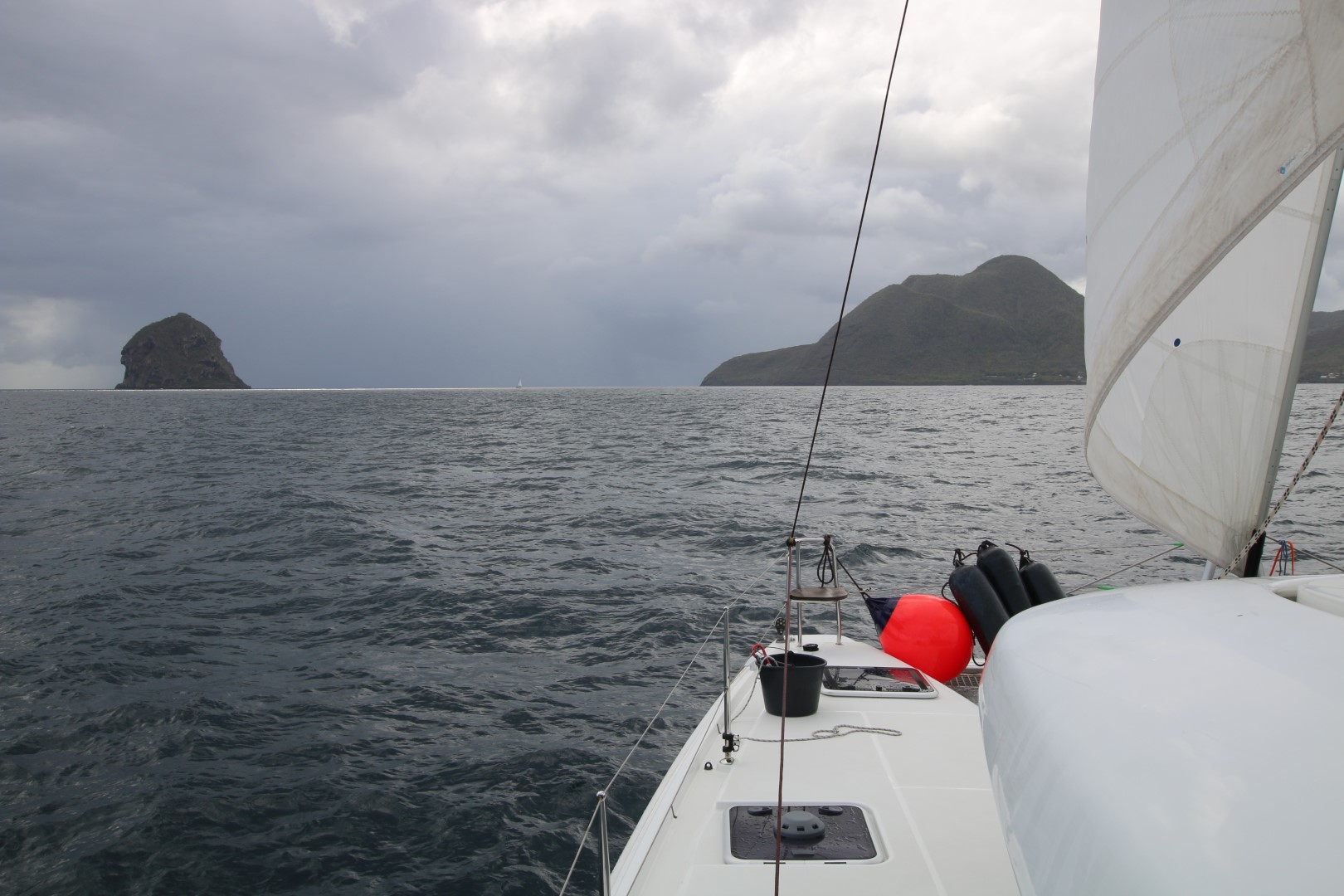 Ganz schön ordentlich Wind weht uns auf die Nase, als wir Anker-Auf gehen. Aber dann geht es mit Rückenwind aus der Bucht von Le Marin raus und mit einer kleinen Rechtskurve auf das heutige Ziel Anse D’Arlet zu.