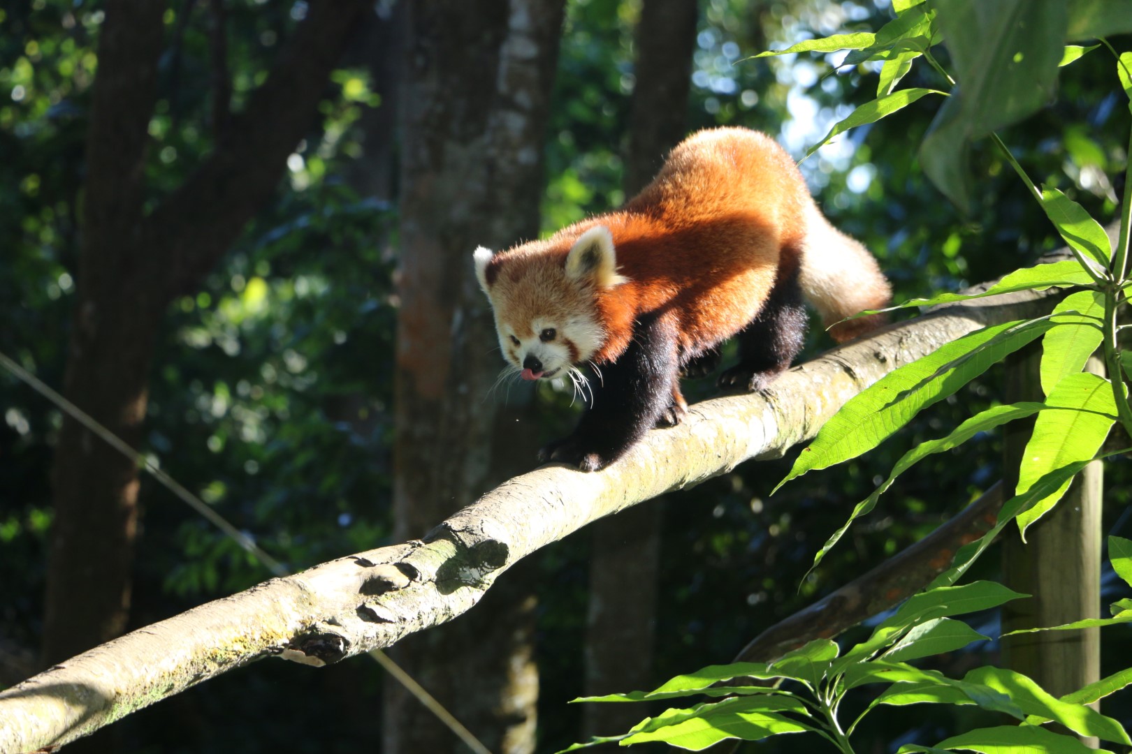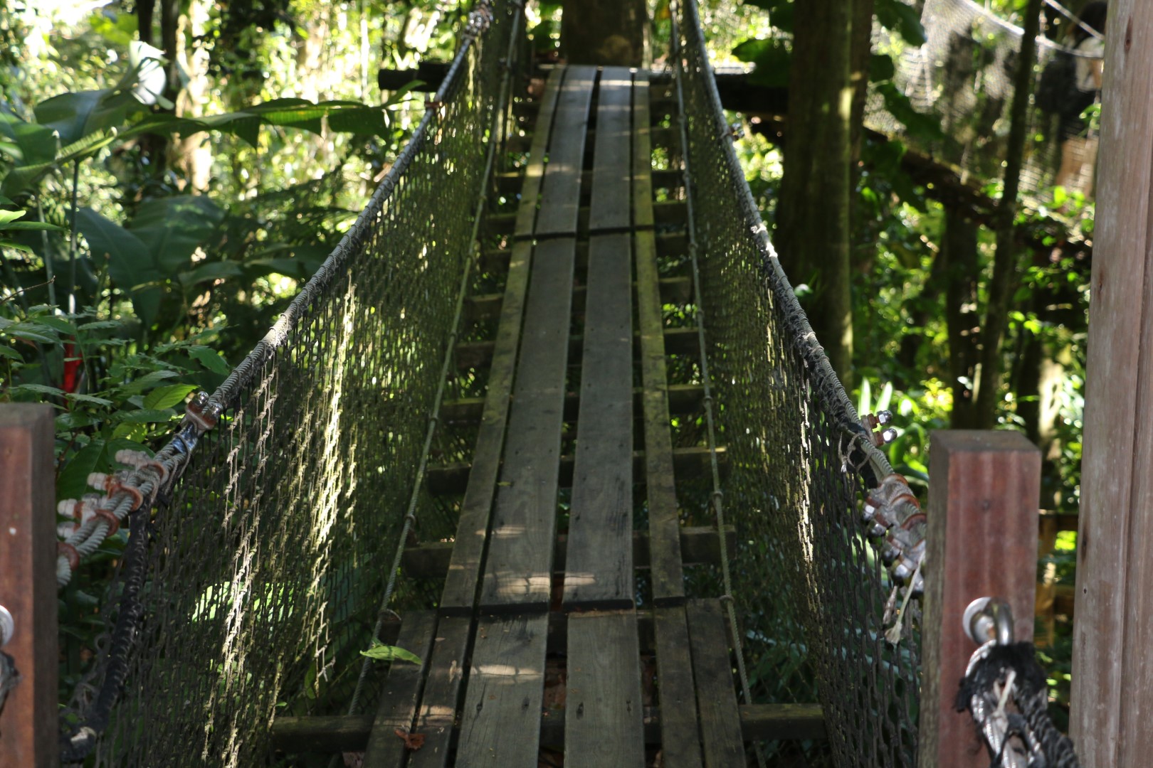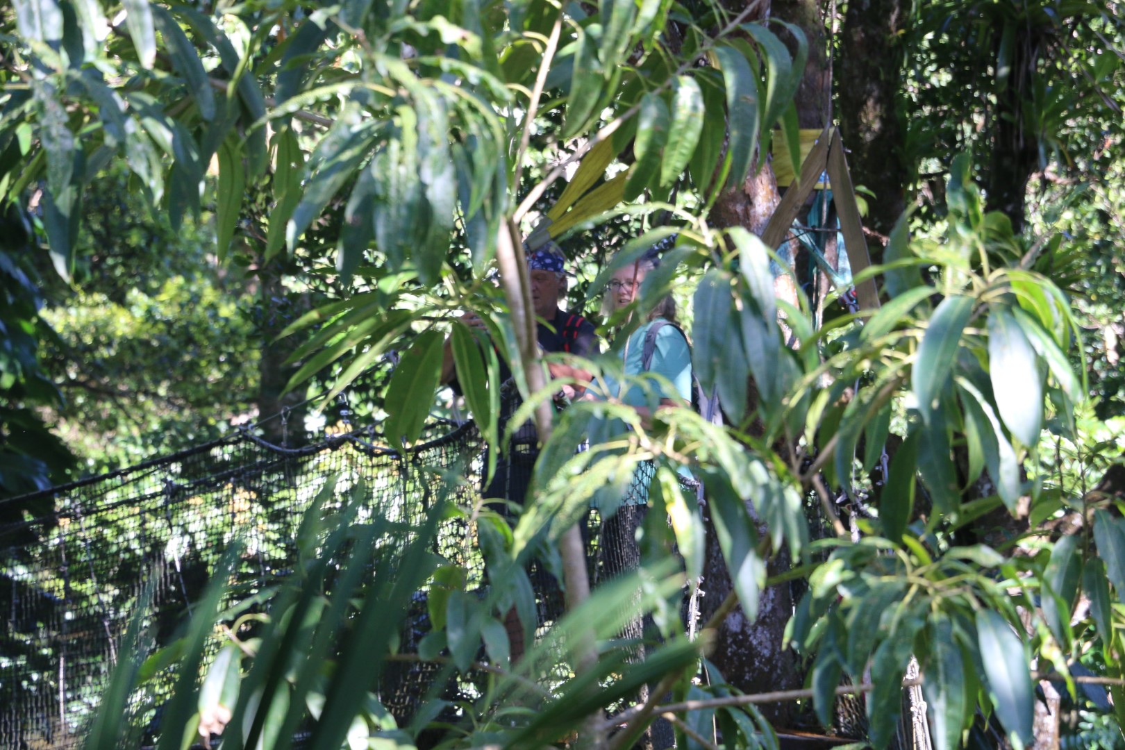 In weitem Bogen dann zurück und fast auf die andere Seite der Insel führt uns Yoshi dann in den Zoo. Ein phantastisch gemachter Weg führt großenteils ÜBER die einzelnen Käfige. So gemacht, dass man die Einfriedungen eigentlich nicht sieht. Und dann noch bis in die Baumwipfel ein Höhen-Seilgarten-Weg. Eigentlich bin ich ja nicht so für Zoo, aber diesen hier empfehle ich gerne und mit Begeisterung weiter! Aber das gleiche Problem wie im Regenwald: Fotos, Fotos, Fotos.