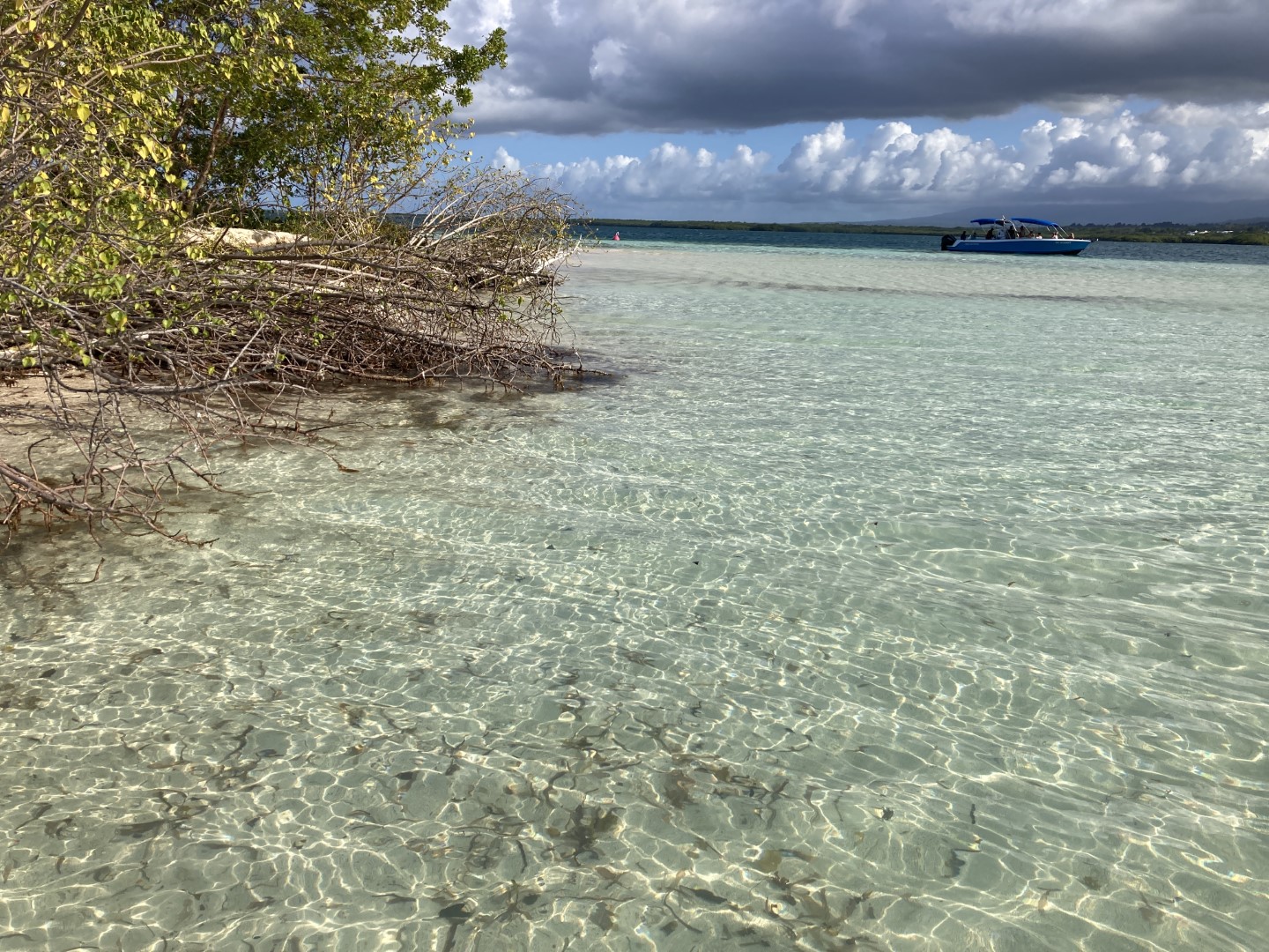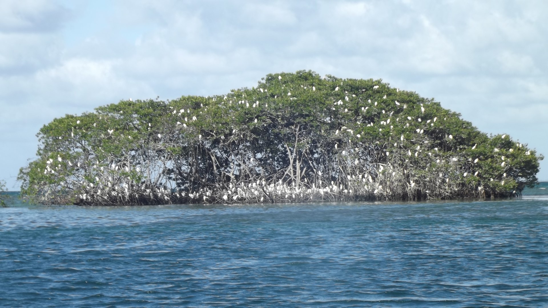 Danach geht es weiter zu einer vor ein paar Jahren von einem Hurrikan aufgewirbelten Insel (der Sand besteht aus kalzifizierten Algen.) Sehr karibisches Flair. Diese Insel wird frei von Sträuchern und Mangroven gehalten, da hier Bodenbrüter hinkommen. In der Zeit ist es natürlich verboten die Insel zu betreten.