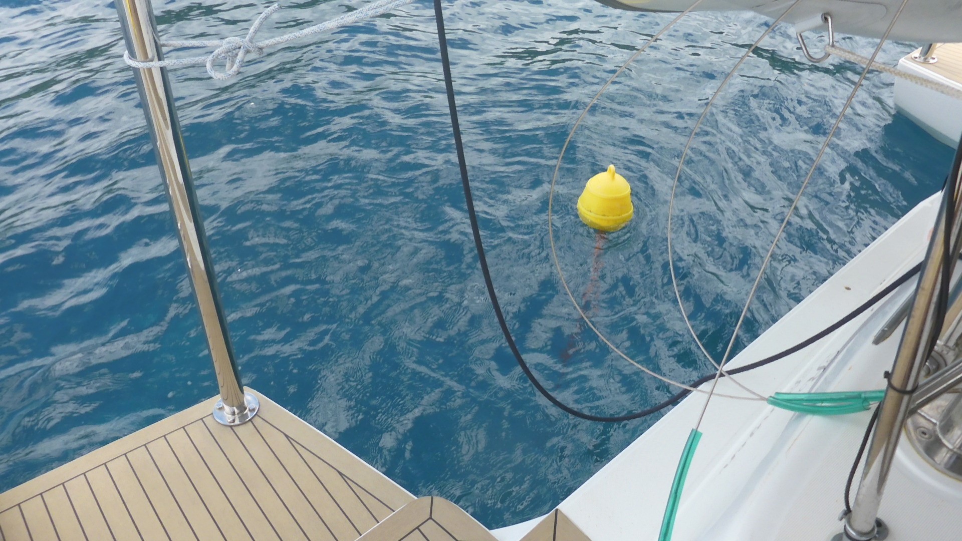 Der Anfang einer Odyssee!!!! Wir wollen eigentlich den Anker nur ca. 20 m weiter vom Ufer entfernt, als er jetzt liegt, werfen. Also ca. 6m Kette einholen, Hahnepot abgemacht, weiter Kette rein, Ankerboje aufnehmen und den Rest der Kette aufwickeln, bis endlich der Anker oben ist. Zum Zielpunkt fahren, das ganze Prozedere rückwärts, Anker eindampfen, Anker hält, Hahnepot setzen, noch etwas Kette und fertig. Diesmal wird er nicht tauchenderweise gecheckt. Einige Zeit später, habe mir gerade eine Tasse Kaffee gemacht, klar, wie soll es auch anders sein, merken wir, dass wir auf Drift gehen. Same procedure as last time! Anker auf, Anker eindampfen, Anker ordentlich eindampfen; hält! Wunderbar…..bis wir erneut auf Wanderschaft gehen! Diesmal wollen wir komplett woanders hin, nach vorne in der Mitte der Bucht und dort unser Glück versuchen. Diesmal hält er…..allerdings ist die Nacht windstill und unser Boot schwoit, wie in solchen Situationen üblich, über den Anker und dreht und kreist…. Bis es am nächsten Morgen den Anker wieder ausgegraben hat und wir wieder auf Wanderschaft gehen. Das hätte uns durchaus auch in der Nacht passieren können, aber da wir eine doch recht zuverlässige Ankerapp haben, hätte die uns aus dem Schlaf gepfiffen, sobald das Boot den Schwoikreis verlassen hätte. So konnten wir wenigstens ausschlafen und werfen den Anker heute morgen erneut. Der Ankergrund ist ja gut – diesmal setzen wir auch einen Anker achtern, so dass das Boot nicht mehr über den Anker fahren kann. Dafür verfängt der sich im Propeller…. Ärger, nichts als Ärger.