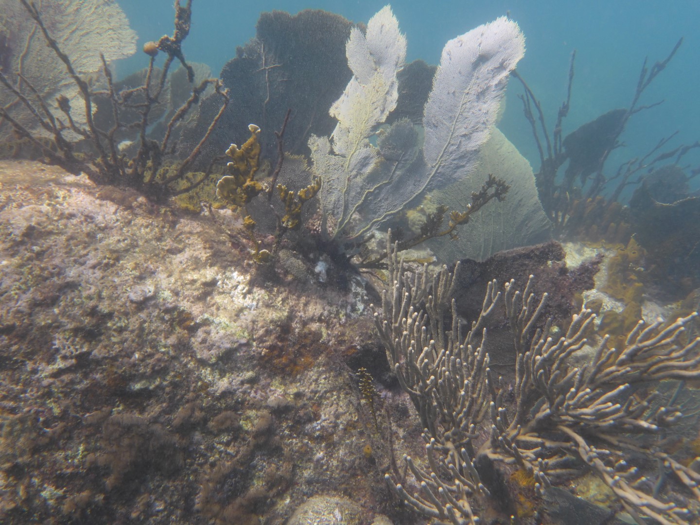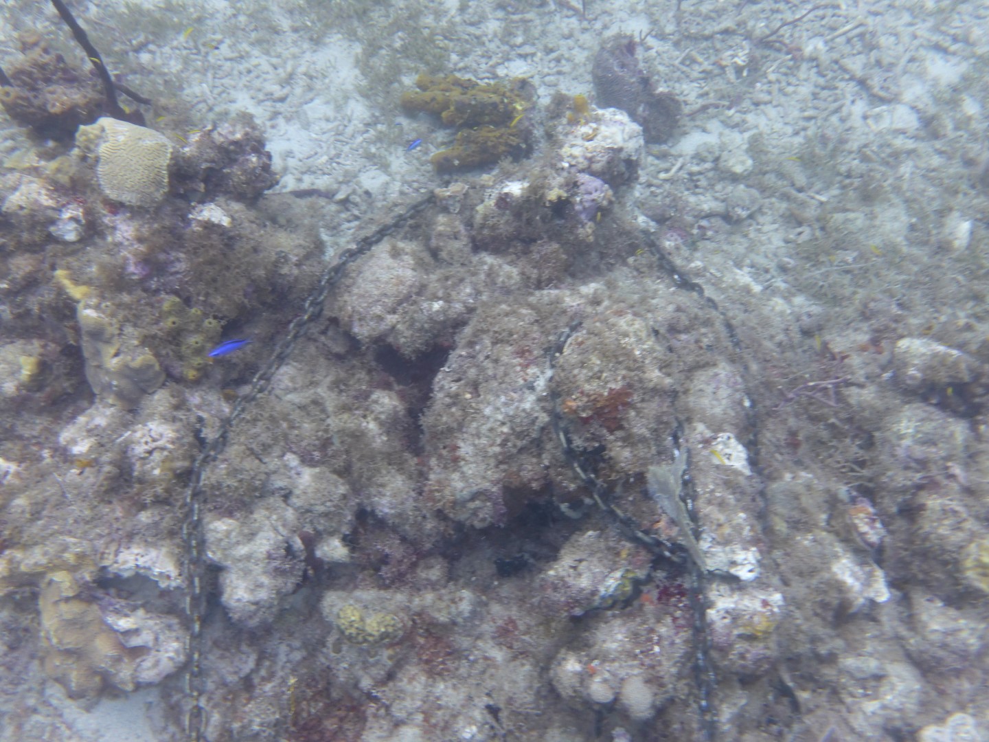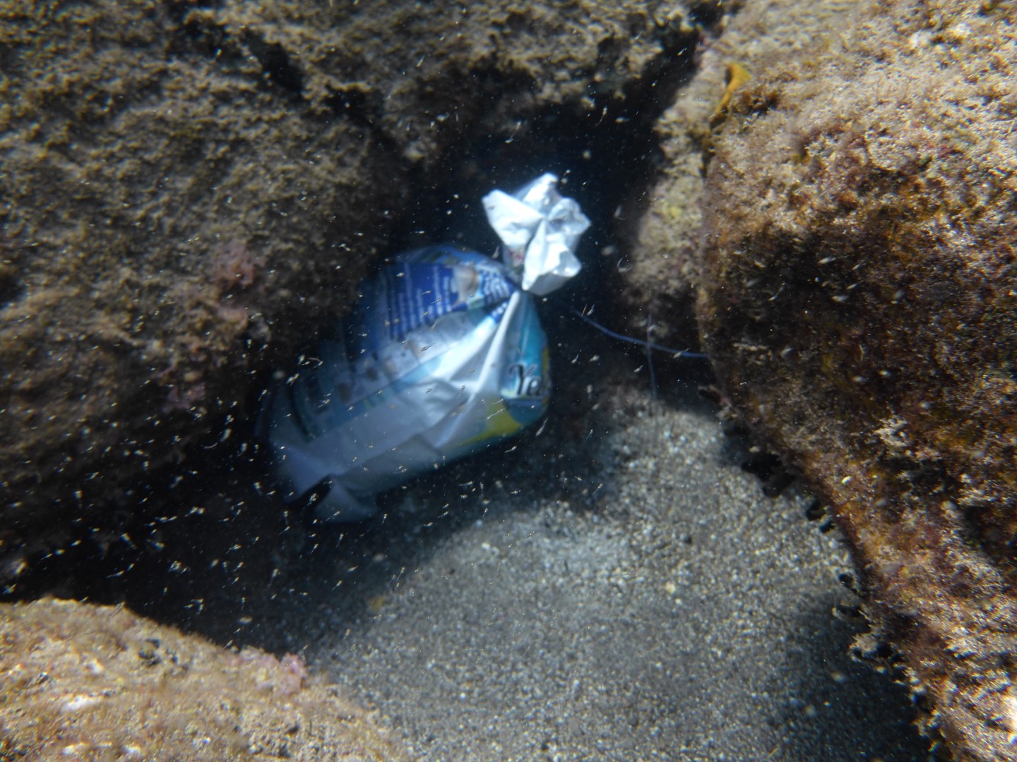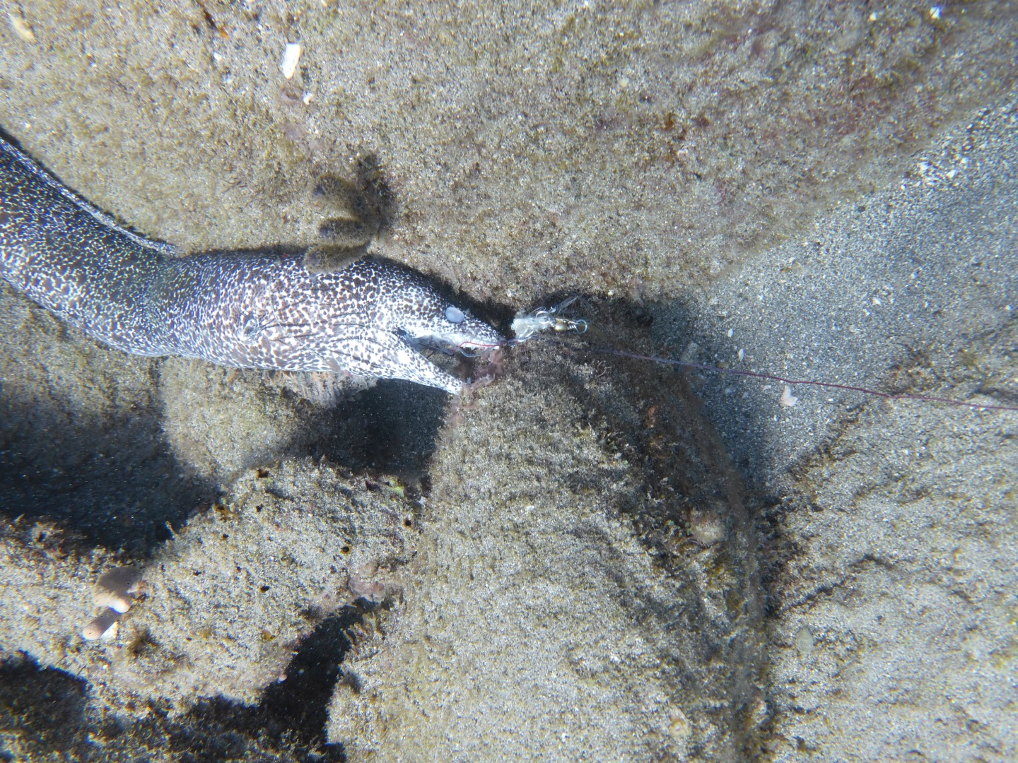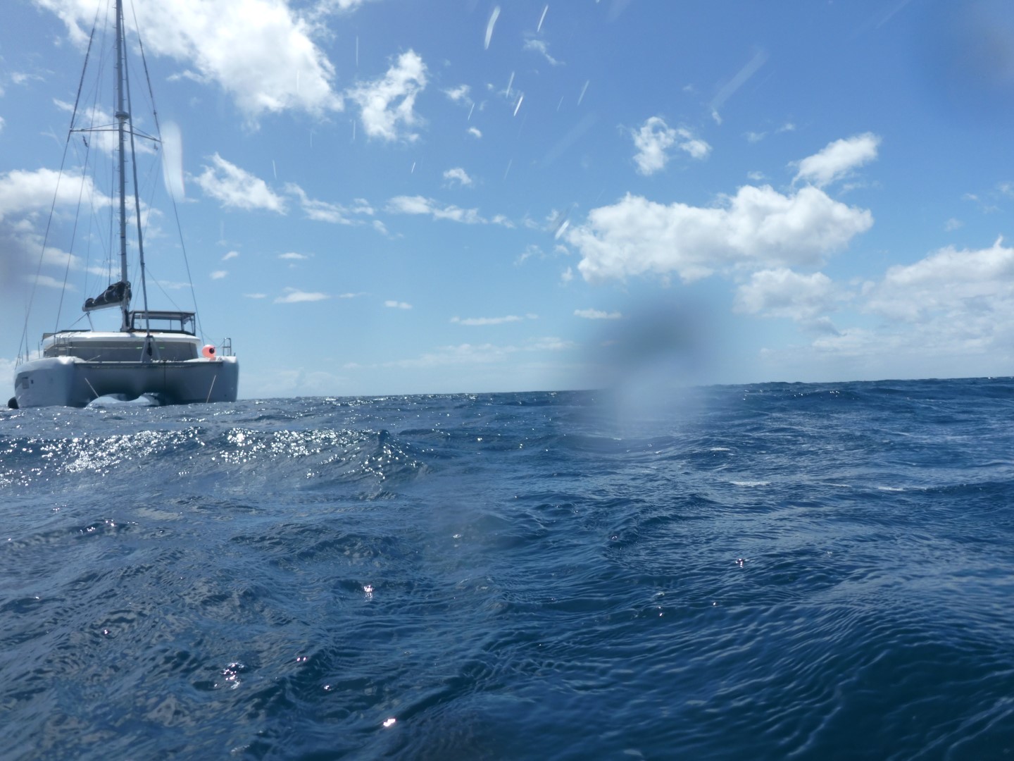 Auch hier soll die Unterwasserwelt schon schnorchelwert sein, so die CLOUD JUMPER. Wir gehen also auf Tauchgang, checken die Felsen unter Wasser, checken den Anker und ergründen die Unterwasserfauna und -flora. Leider sind wegen des Windes und somit etwas Wellengang viele Schwebeteilchen im Wasser unterwegs und die Sicht ist etwas trübe. Wir schnorcheln noch um die Ecke, hier ist das Wasser klar, aber leider nicht so wahnsinnig viele Fische unterwegs. Dafür finden wir aber eine Mülltüte und eine verendete Muräne, die an einem Angelhaken hängt. Ich bin etwas deprimiert. Wieder zurück an Bord wird es Chrischan doch etwas mulmig wegen der gefühlt großen Nähe zum felsigen Ufer. Diesmal bin mal ausnahmsweise nicht ich es, der es zu heikel wird und da Chrischan sonst bei mir auch nie - oder fast nie ;) - meckert, stimme ich einer Verlegung zu.