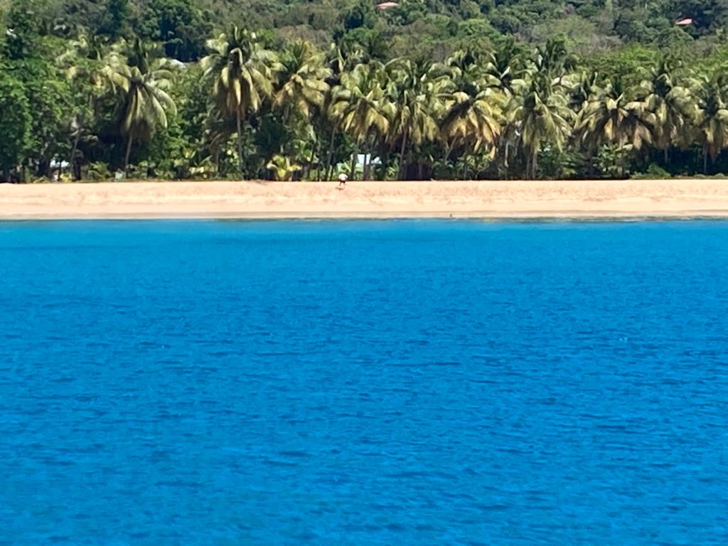 Diese Bucht hatten wir uns schon bei der Rundfahrt mit dem Wagen angeschaut und uns nur gewundert, wieso die so leer ist. Und hatten beschlossen zum Ausklarieren hier zu ankern. In der Bucht von Deshayes ( und bevor man sich die Zunge verrenkt: Déhé wird es ausgesprochen, und von den Einheimischen einfach nur Dé genannt. Man glaubt ja nicht welche Möglichkeiten einer Aussprache dieses Namens ich schon gehört habe. Und trotzdem, ja, auch ich habe es falsch ausgesprochen!), direkt südlich von „unserer“ Grande Anse kann man nämlich ausklarieren.