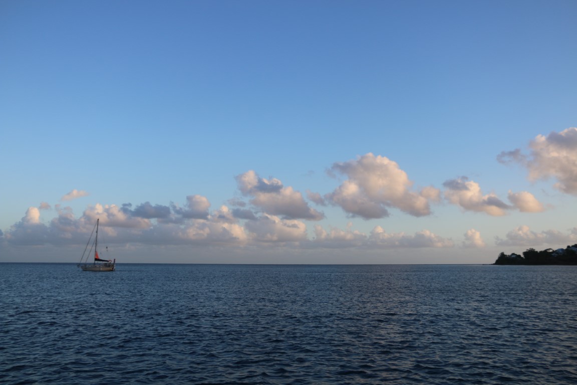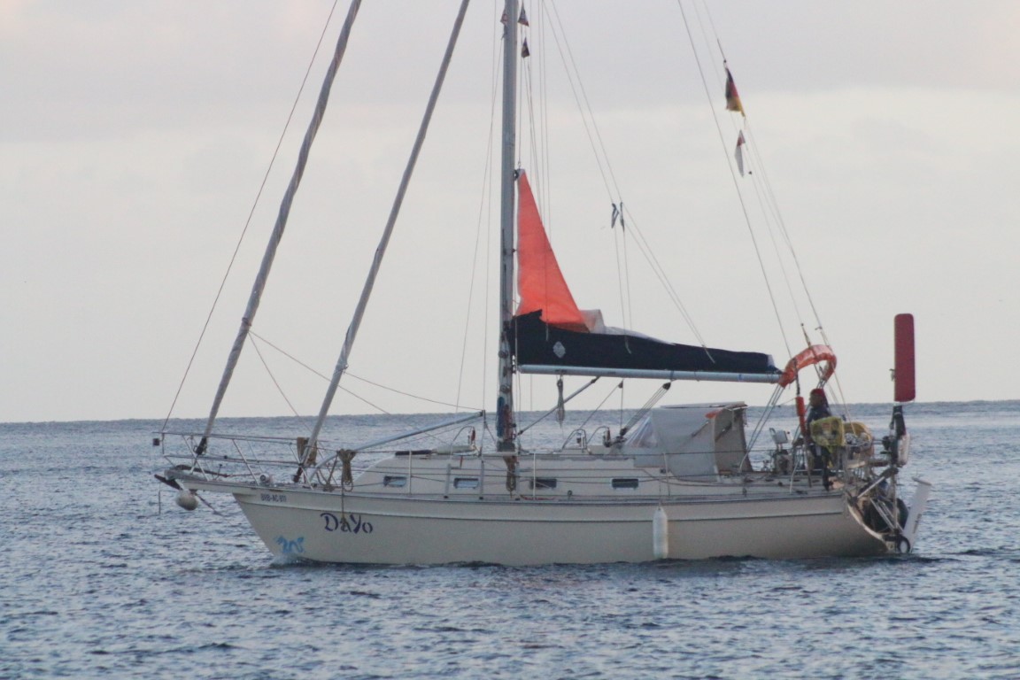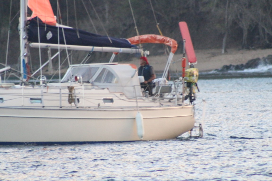 Morgens um 05:30 ist die Welt wirklich noch in Ordnung. Eigentlich hatte ich Yoshi ja versprochen, ihm beim Anker auf zu helfen. Aber auf der DaYo tut sich noch nichts! Aber als ich von der Toilette wieder hochkomme, hat er wohl schon einen erheblichen Teil der Kette aus dem Wasser. Gerade noch kann ich ein paar Fotos von seiner Abfahrt machen und ihm noch „gute Reise“ nachrufen.