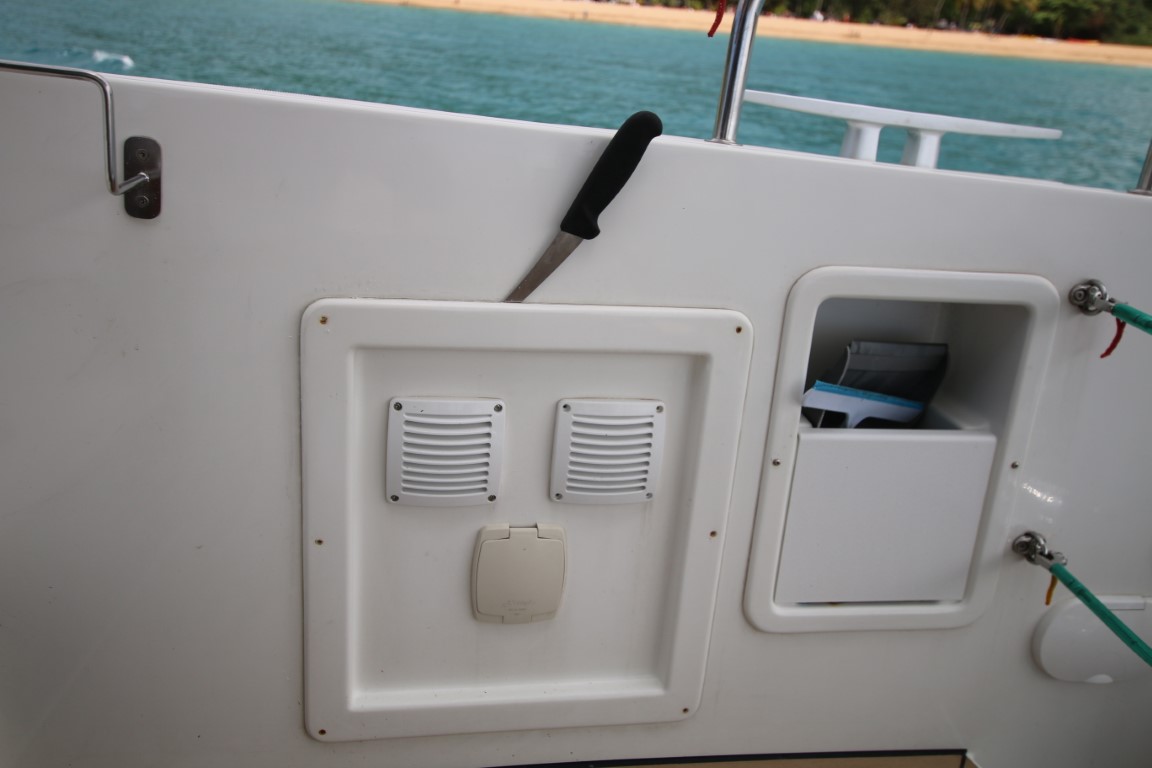 Den Rest des Tages verbringen wir langsam. Die Homepage bekommt noch Berichte und Bilder. Und ich baue zwei Klampen achtern an beiden Seiten an. Das ist, da erst mal ein Zugang geschaffen und am Ende auch wieder verschlossen werden muss, keine Sache von wenigen Minuten….
