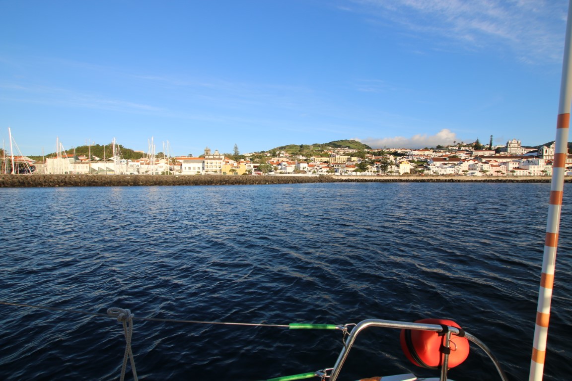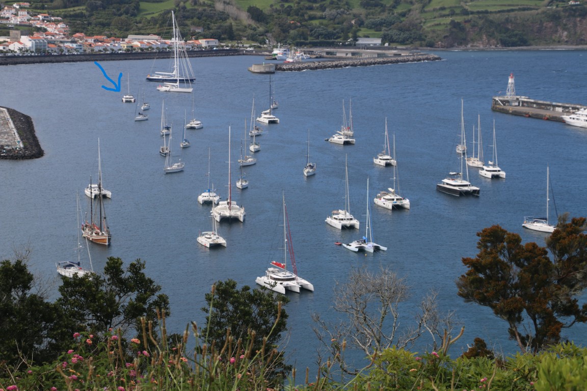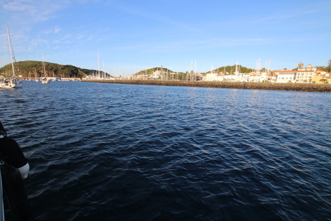Heute ist der erste sonnige Tag auf den Azoren und am Nachmittag latschen wir den 2. Krater hoch, nicht ohne regelmäßige Pausen, um die Aussicht zu genießen. Es ist aber auch eine schöne Aussicht!! Nachher gehen wir noch in die Bar am Ende des Hafens und entdecken dort auch die Dusch- und Waschgelegenheiten. An Bord gibt’s als Abendessen die Reste von den Tagen vorher. Und das war’s auch schon für heute.
