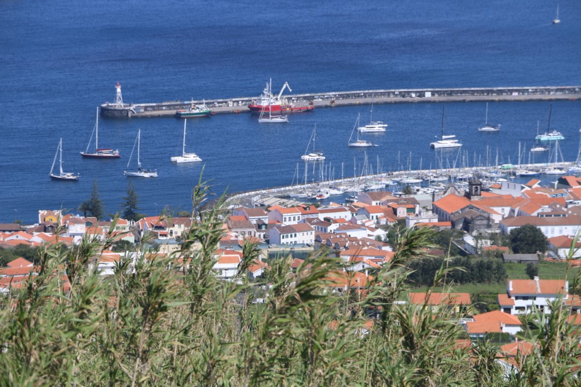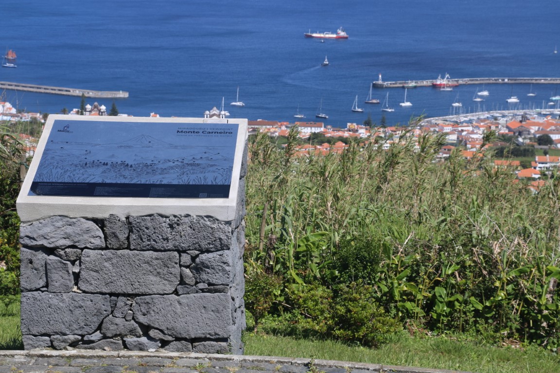 Vormittags Home-Office, insbesondere die Bilder und Filmchen für die Homepage brauchen ihre Zeit. Nachmittags dann „Wandern mit Yoshi“. Mein Vorschlag, den Monte Carneiro zu „besteigen“, wird angenommen. So machen wir unseren nächsten „Berg“. Horta und seine Bauten gefallen uns – bei schönem Wetter – ausnehmend gut. Nun – wir haben zwar lange Hosen an, aber heute scheint dazu die Sonne. Das geht dann schon auf 20° zu. Da kann man dann den Flies ausziehen. Insbesondere, wenn man untrainiert einen 391 Meter-Anstieg macht.