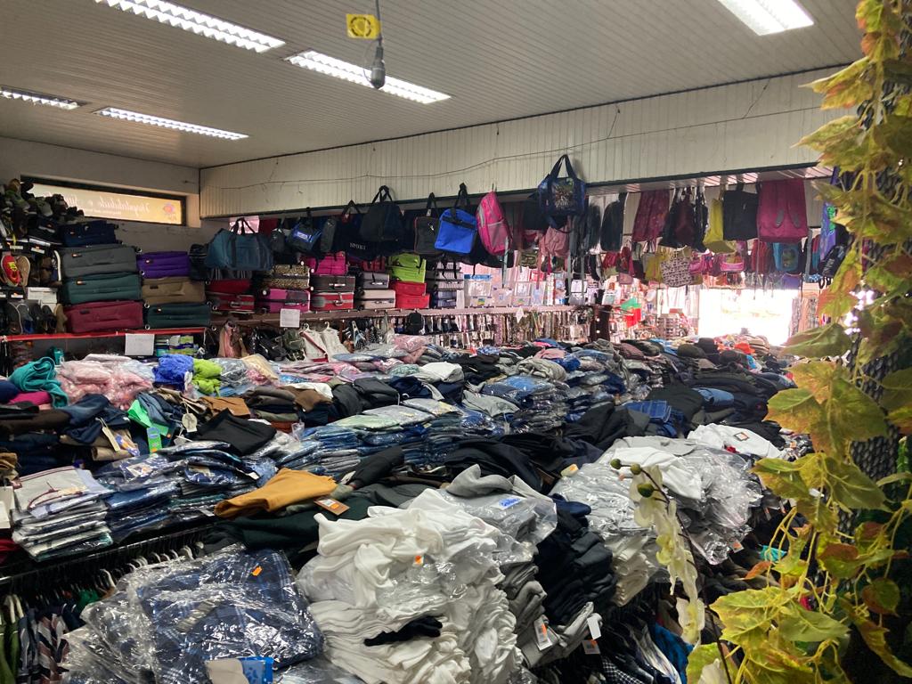 Wir schießen bei schönem Sonnenschein und ein wenig Regen darin schnell noch zum Chinesen: Ein Laden so was von voll gepfropft. Und das Sortiment: Alles. Ich finde etliches an Werkzeug, was bei mir auf der Liste steht, Abzieher, die wir schon seit Monaten suchen und selbst in Baumärkten nicht bekommen haben. Unten sind Klamotten, Michèle findet eine Moskito-Lampe.