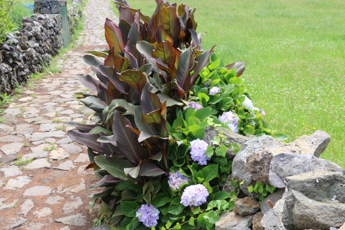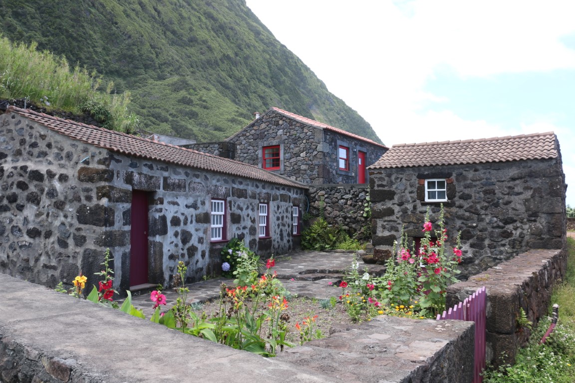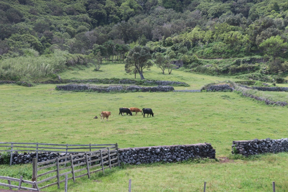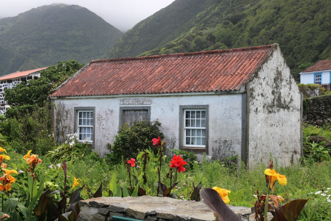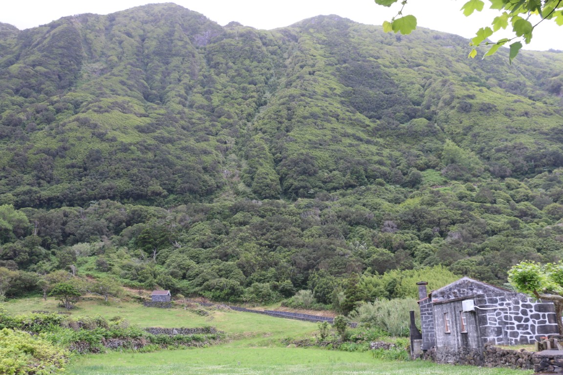 Angekommen in der Fajã da Caldeira de Santo Cristo kehren wir in ein Café ein, drehen eine Runde durch den Ort und machen uns auf den Rückweg. Um 17:00 erreichen wir Fajã dos Cubres und beschließen, dass uns das Taxi wieder unten abholen kommen soll. Unterwegs erzählt uns der Fahrer, dass der Feldweg zwischen beiden Fajãs nicht ausgebaut werden darf, es dürfen keine zusätzlichen Häuser dort errichtet werden und die Häuser, die es dort schon gibt, dürfen nicht verändert werden. Ein kleines Zugeständnis an die Moderne geht doch: die Eigentümer der Gebäude dürfen sich ein Badezimmer einrichten!