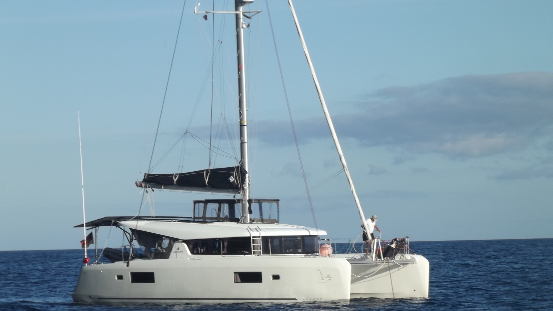 Draußen erwartet uns dann im Laufe des Tages Sonne – und Schwachwind. Genau von achtern. So wird dann das Groß eingeholt und gegen 15 Uhr der ParaSailor gesetzt. Und selbst damit schleichen wir nur nach Süden. Aber – Sonne!!