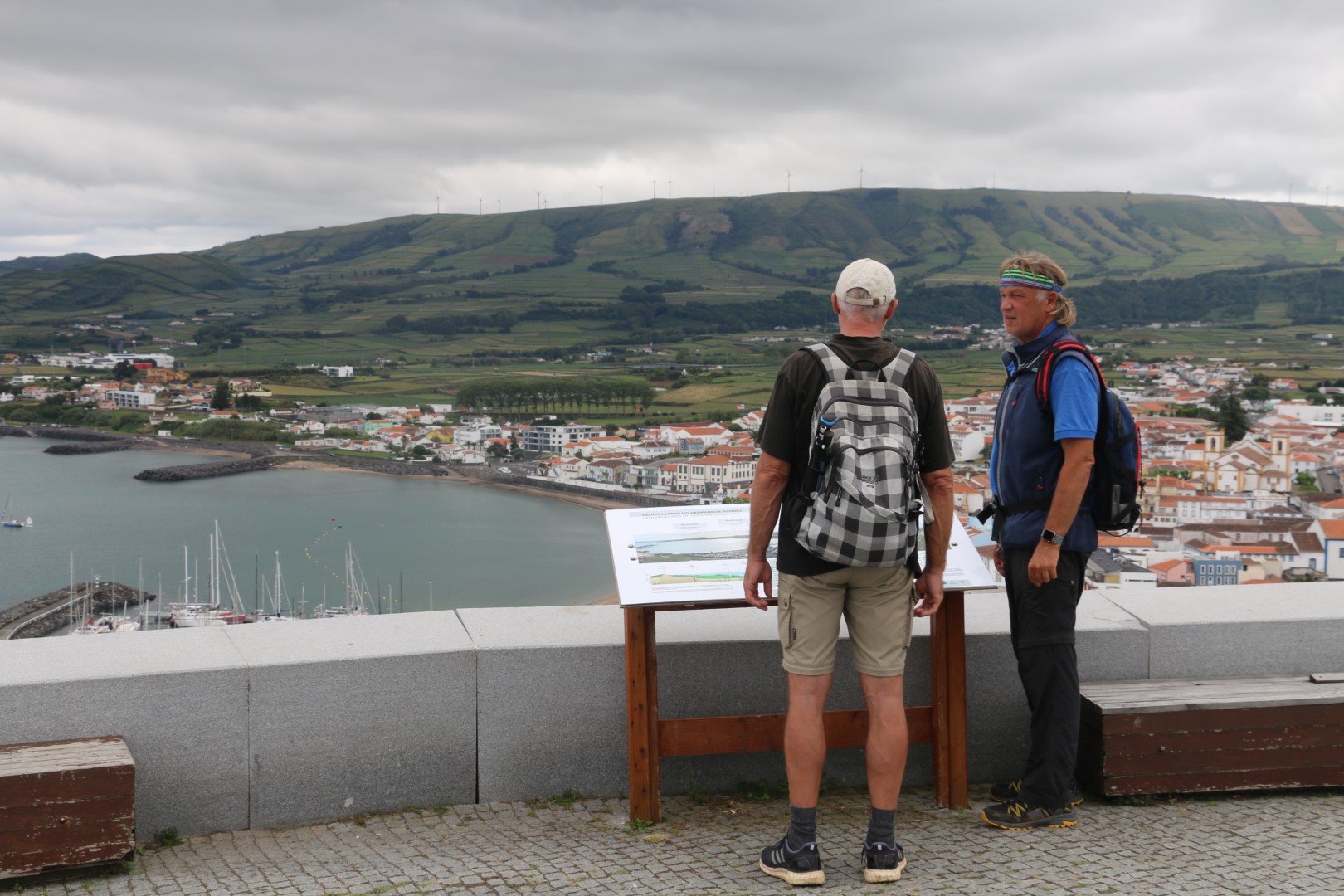 Nach weiterer Büro- und Homepage-Arbeit geht es nachmittags „an Land“. Zunächst einklarieren. Ich bin immer wieder fasziniert: Auf jeder portugiesischen Insel ist der Fragebogen anders. Jedes Mal wollen sie andere Dinge wissen. Vielleicht ist das auch in jeder Polizei-Dienststelle anders. Man müsste sich mal an zwei Häfen der gleichen Insel anmelden… Heute ist unser Auslandsaufenthalt wichtiges Thema: Wo waren wir außerhalb der EU (Bermudas), wann sind wir da abgefahren (oops – muss ich im Logbuch nachschauen!), wann sind wir am ersten Einreisepunkt in Europa angekommen (habe noch die Einklarierung von Horta da!), wo war das (gut: Horta, Failal, Portugal). Wie viele Personen sind mit dem Schiff eingereist, reisen aber auf anderem Wege aus (null), wie viele Personen werden voraussichtlich mit dem Schiff ausreisen, sind aber nicht mit dem Schiff eingereist (auch null). Wenn der Captain kein EU-Bürger ist (ist er aber), was ist dann der Eigner (auch EU-Bürger). Das muss mit dem Reisepass nachgewiesen werden: Also zeige ich auch meinen Reisepass vor. (Ob ich wirklich Captain und Eigner bin, wird nicht hinterfragt.)
