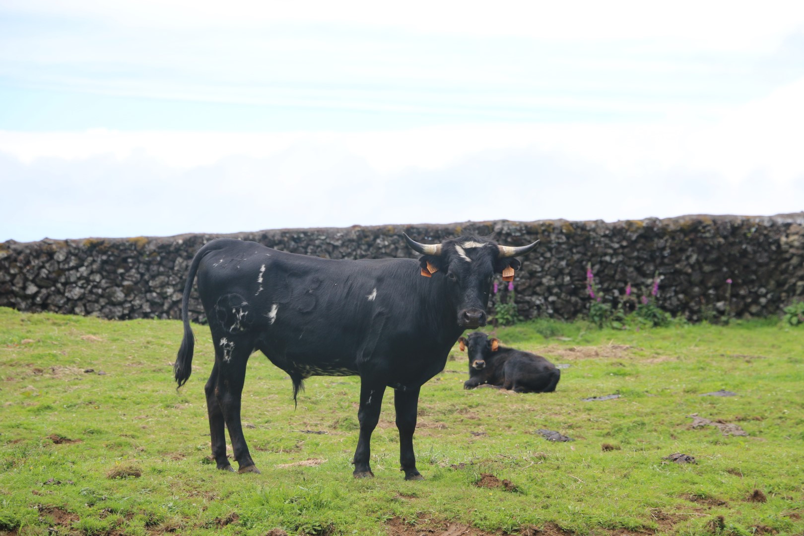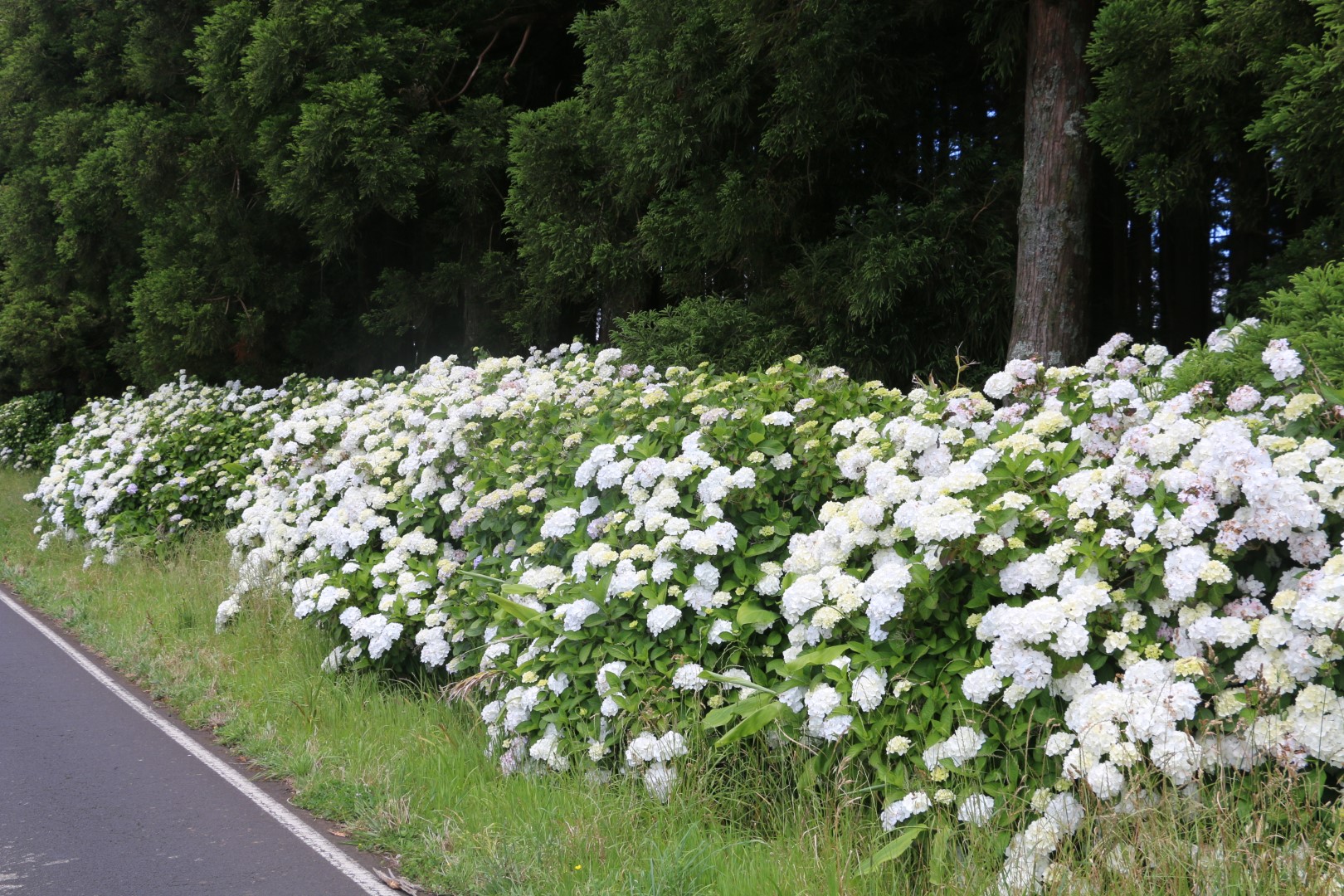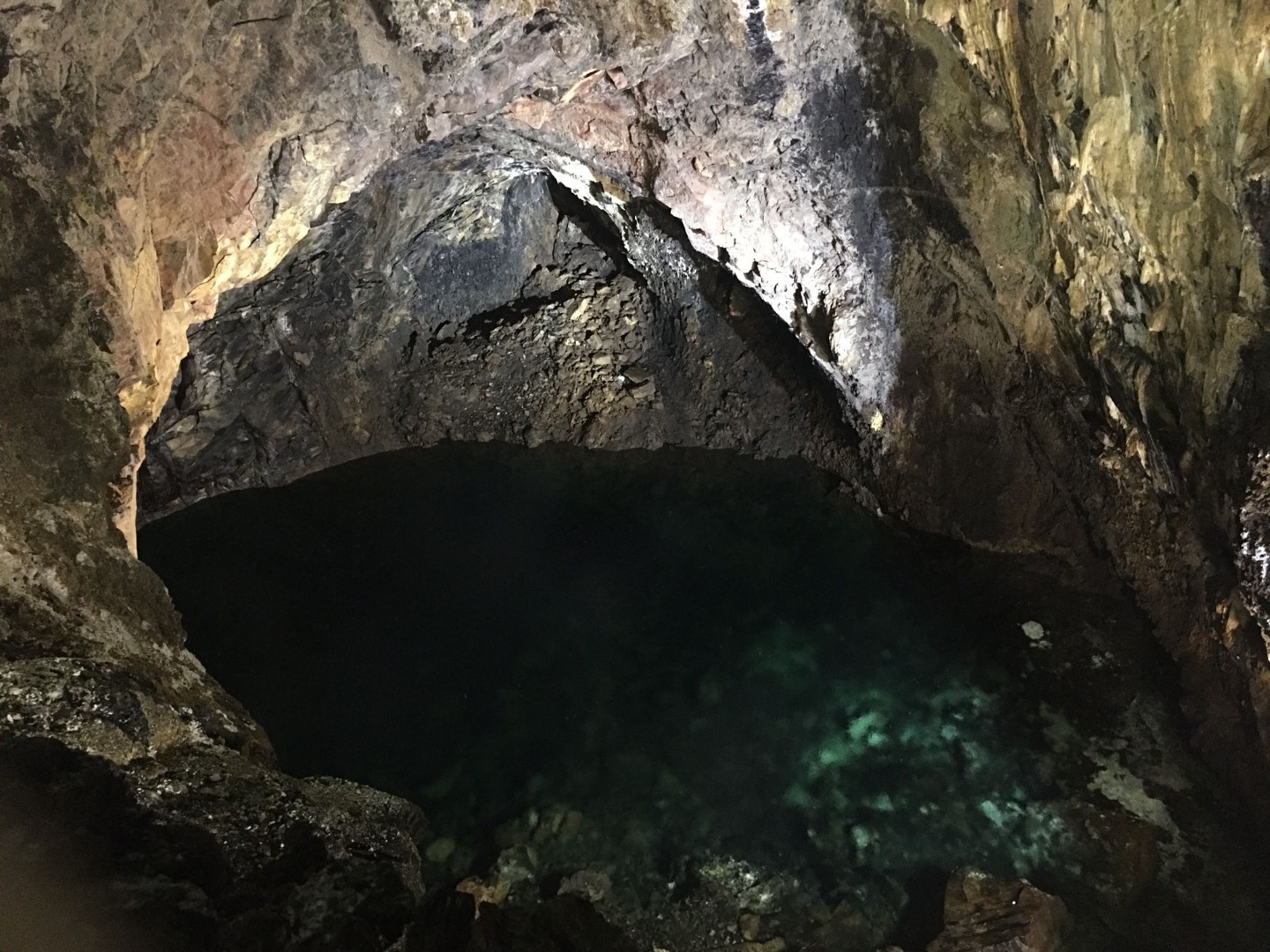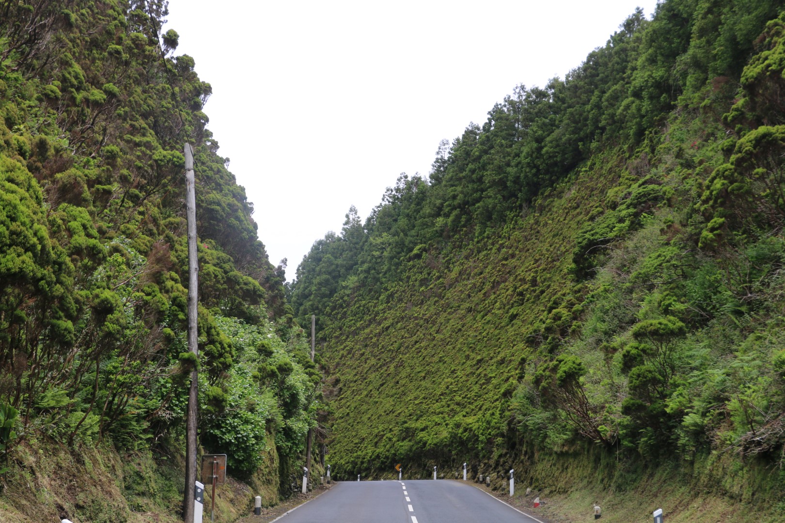 Dann kann es so richtig losgehen. Bergauf, bergauf, bergauf, hinter jeder Kurve der bekannte Ausblick: bergauf. Vorbei an schönen Hortensienbüschen, Weiden mit Stieren, die für die „Stierkämpfe“ hier gezüchtet werden. Und natürlich viel Natur. Die 11 km haben wir bald hinter uns gebracht, aber von der Grotte ist weit und breit noch nichts zu sehen! Es sind noch ein paar Kilometer. 2 km vor dem Ziel geht ein Abzweig mit dem Hinweis 0,7 km bis zu den Schwefelquellen. Obwohl alle platt sind, nehmen wir die auch noch mit. Der Weg um die Hauptquelle ist schön durch wilde ursprüngliche Natur angelegt, aber rauchen tut eine Nebenquelle gleich zu Beginn des Weges, mehr. Nach insgesamt fast 20 km, wenn man die Höhenmeter mit einbezieht, haben wir unser Ziel, ENDLICH, erreicht. Aber es hat sich wirklich gelohnt! Die Grotte ist ein echter Hingucker! Auch werden Stalaktiten in unserem Tourguide angepriesen. Diese jedoch lohnen nicht die Tinte für den Druck, habe ich in Bunkern des 2. Weltkrieges schon längere gesehen. Aber deswegen geht man auch nicht dorthin. Der Blick nach oben beim Abstieg ist genauso spektakulär wie die Innenausbuchtungen. Kann ich nur empfehlen.