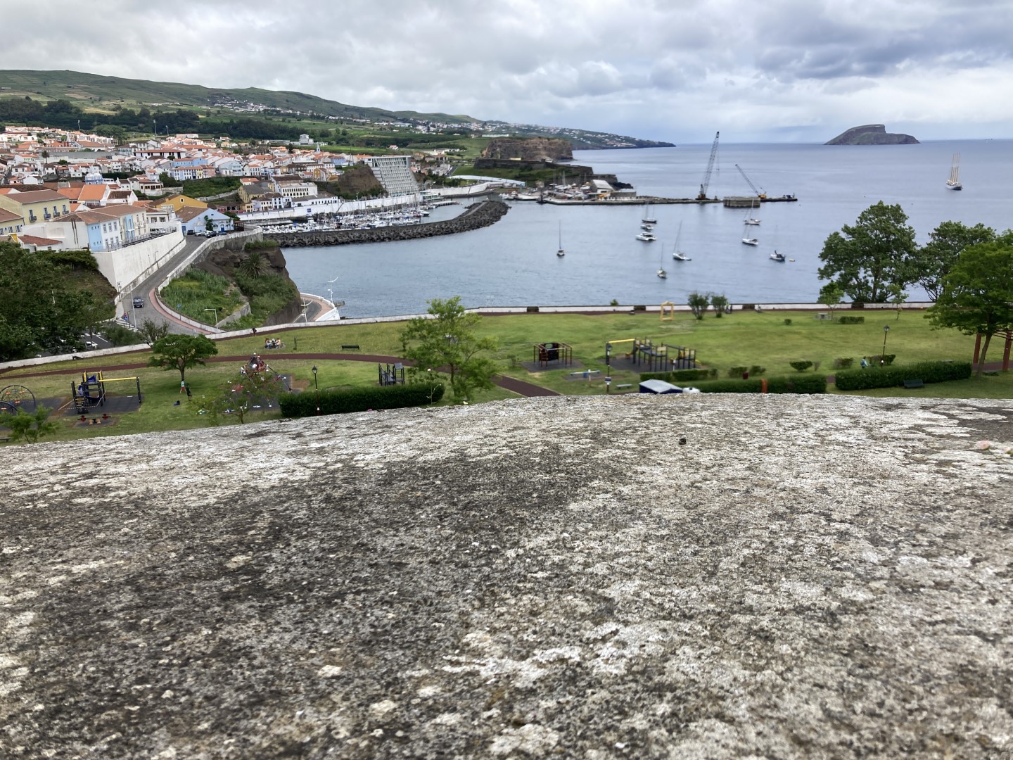 Morgens um 09:00 Uhr sitzen wir im Bus nach Angra do Heroismo. Stadtbesichtigung! Also habe ich unsere Stöcke ausgepackt. Und das Weitwinkel-Objektiv eingepackt! Dazu einen Flies. Für den Nachmittag ist Regen angesagt.