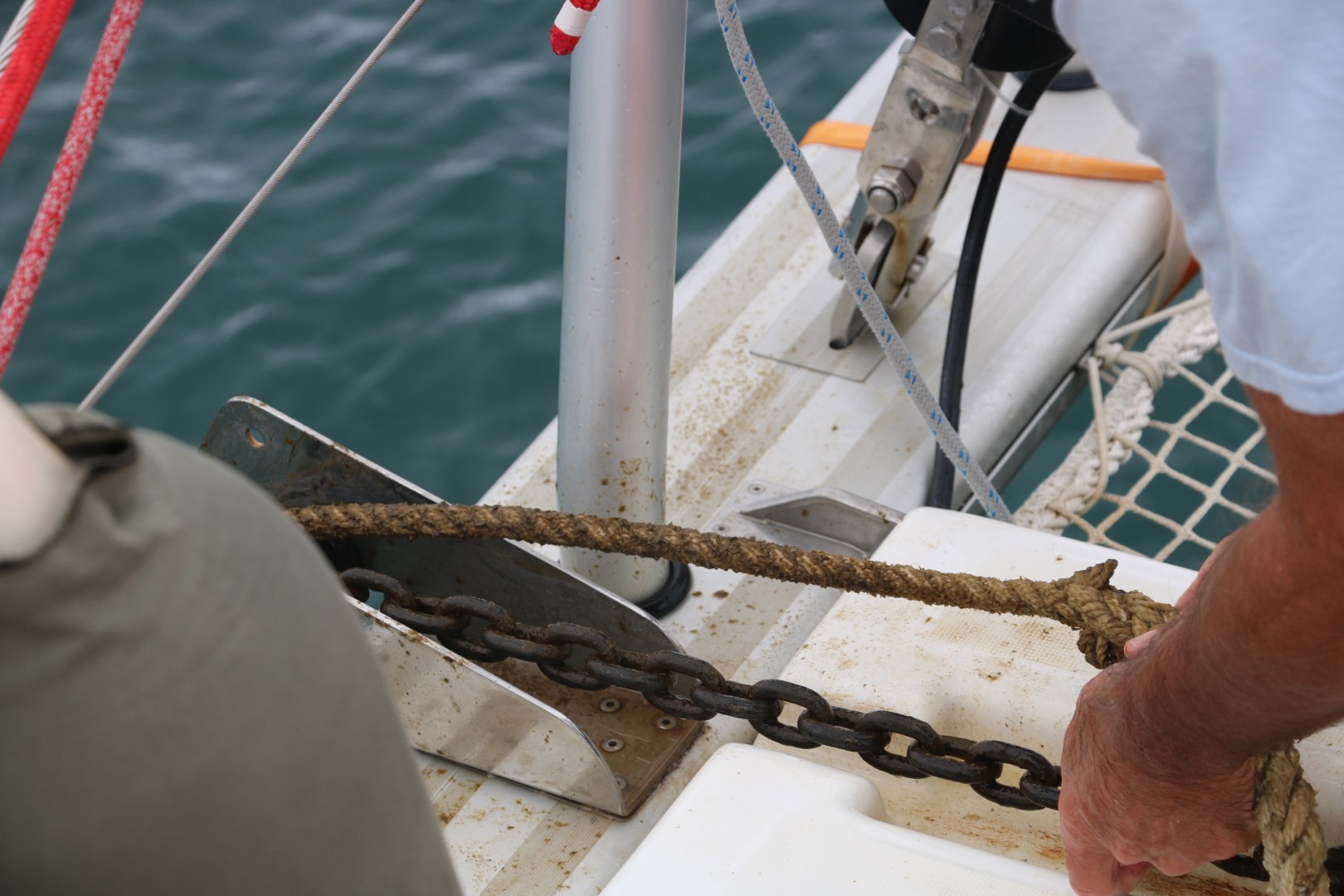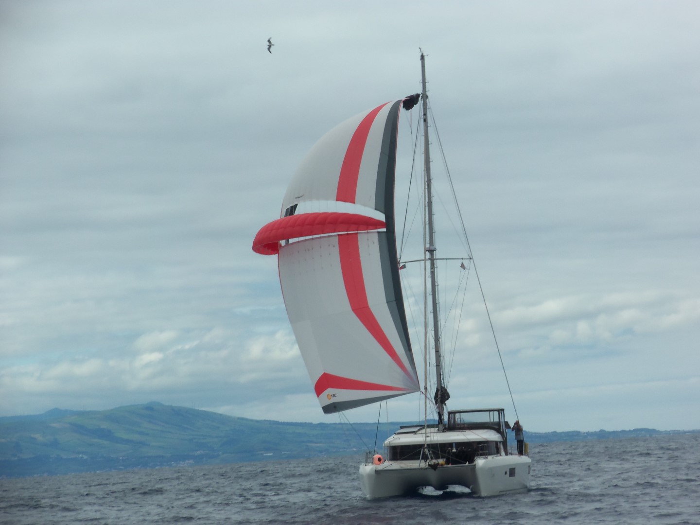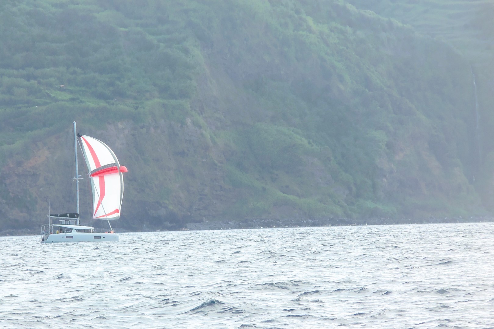 An Bord kommt Michèle hoch: Es geht ihr nicht gut. So richtig verzieht sie sich dann nicht wieder ins Bett, aber gut sieht das nicht aus… Nachdem Yoshi losgeht beginnen wir mit Anker-Auf. Das ist heute eine längere Sache, denn der Hahnepot ist ordentlich bewachsen. So schrubbe ich Stückchen für Stückchen sauber. Das ist einfacher, wenn man das als Taucher im Wasser macht, aber bei 18° wäre ich nur mit Neopren ins selbige gestiegen. Und hätte da wohl auch noch gefroren. So aber wird mir warm… Eine gute halbe Stunde später können wir dann den Anker ganz hochnehmen. 12:00 Uhr ist es inzwischen geworden. Ok – wir wollen ja im Hellen in Ponta Delgada ankommen. Und bei gut 90 Meilen dürfen wir nicht zu schnell sein oder zu früh abfahren. Das haben wir nun im Griff…