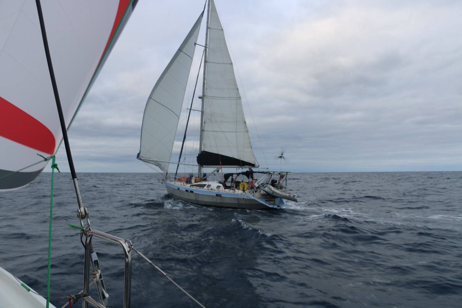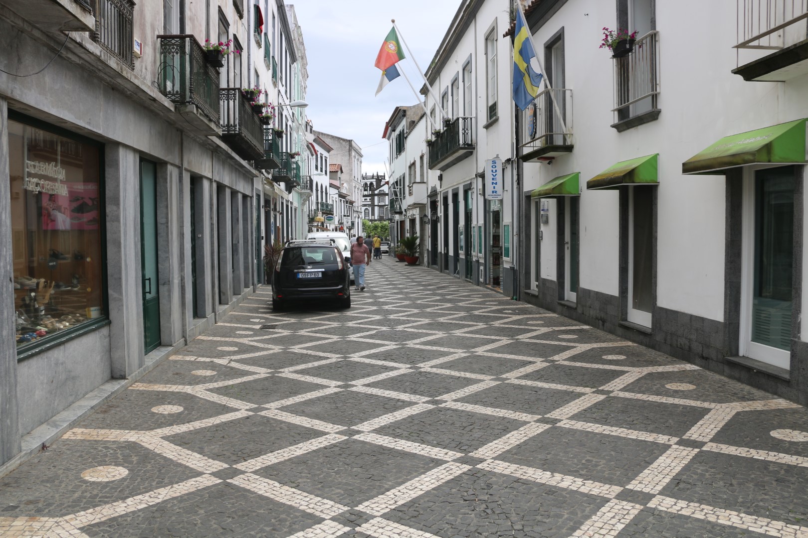 Der Rest der Fahrt – insbesondere der Schlussteil an Sao Miguel entlang – geht von Fast-Flaute bis sehr flotte Fahrt. Da können wir den WaterMaker noch mal laufen lassen, denke ich. Haben ja noch ein paar Stunden. Und prompt meldet Michèle: Eh – fast 7 Knoten! Zack , sind wir am Punkt, ab dem wir auf die letzten 2 Meilen zum Hafen eindrehen müssen. Den ParaSailor runter, die Fender und Festmacher raus und schon sind die 2 Meilen hinter uns. Schnell noch den WaterMaker spülen – das ist immer der letzte Punkt in der Bedienung: Salzwasser raus, alles mit dem quasi-destillierten Wasser gespült und gefüllt. WaterMaker aus und die Einfahrt beginnt. Natürlich antwortet die Marina auf UKW-Anruf nicht. Aber das sind wir ja inzwischen gewohnt und hier auch von anderen Seglern vorgewarnt. Also suchen wir uns ein Plätzchen. Findet sich auch gut. Rückwärts rein, beim Festmachen helfen 2 von einem kanadischen Katamaran sehr zur Freude von Michèle. Aber eigentlich waren wir schon fest, als die kamen. So bald wir nämlich die Backbord Leine achtern fest haben, kann ich mit den Motoren gegen jeden Wind den Zossen festhalten. Und alles andere geht dann in größter Ruhe.