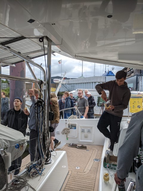 Der letzte volle Arbeitstag der Werft – da lade ich das Team zum Arbeitsschluss um 16:00 Uhr zu einer kleinen Party ein. Bier und Sekt mit Würstchen als Dank für die viele Arbeit, die tollen Ideen und die prima Umsetzung. Der Großteil des Teams kommt auch und es gibt noch mal schöne Gespräche.