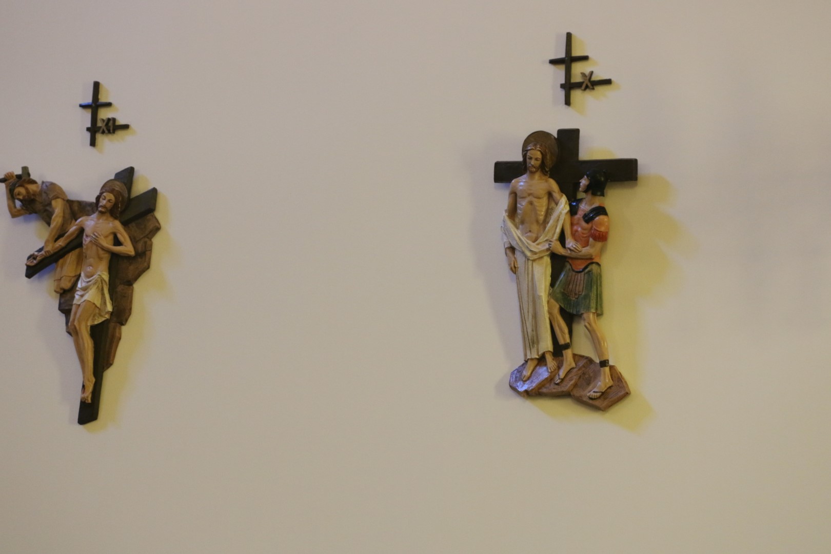 Dann kommt der zweite Teil der Runde um den See. Guter Wanderweg, doch noch einige Leute, die uns begegnen. Einige Hozskulpturen, die uns an unseren alzeyer Kettensägen-Künstler erinnern. Eine große Station von bunkerartigen Gebäuden zur Erforschung und Überwachung der vulkanischen Aktivitäten hier. Dann ein Jardin: Wieder 10 € Eintritt. Michèle schimpft nicht mehr über die Geschäftsuntüchtigkeit hier. Sondern schlägt den Verzicht vor. Die eine Hauptattraktion des Jardin können wir auch von der Straße besichtigen: Eine ziemlich verwahrloste Kirche. Die andere Attraktion, ein min 10 Meter hoher Wasserfall, muss eben ohne unser Ah! und Oh! Auskommen.