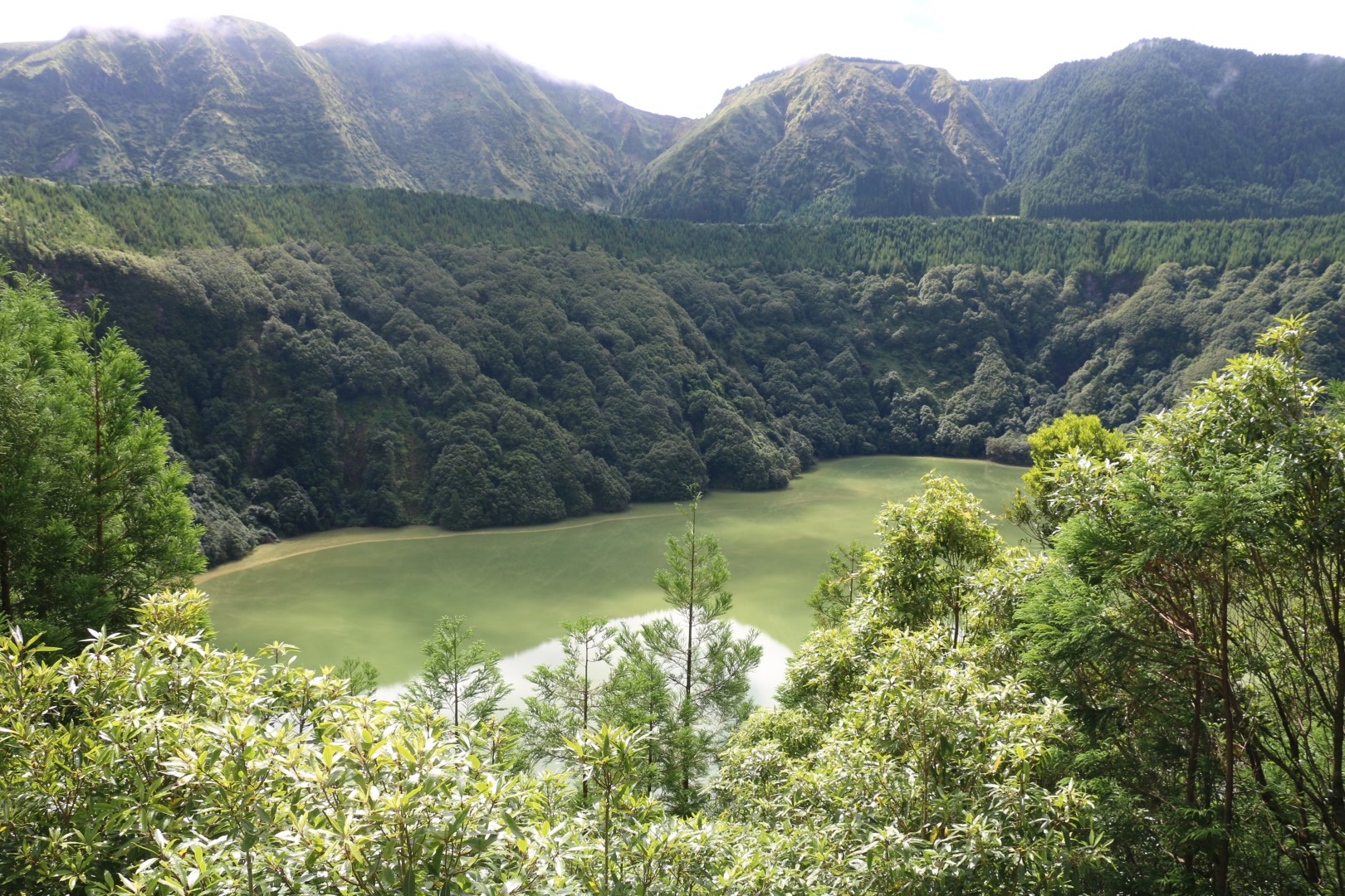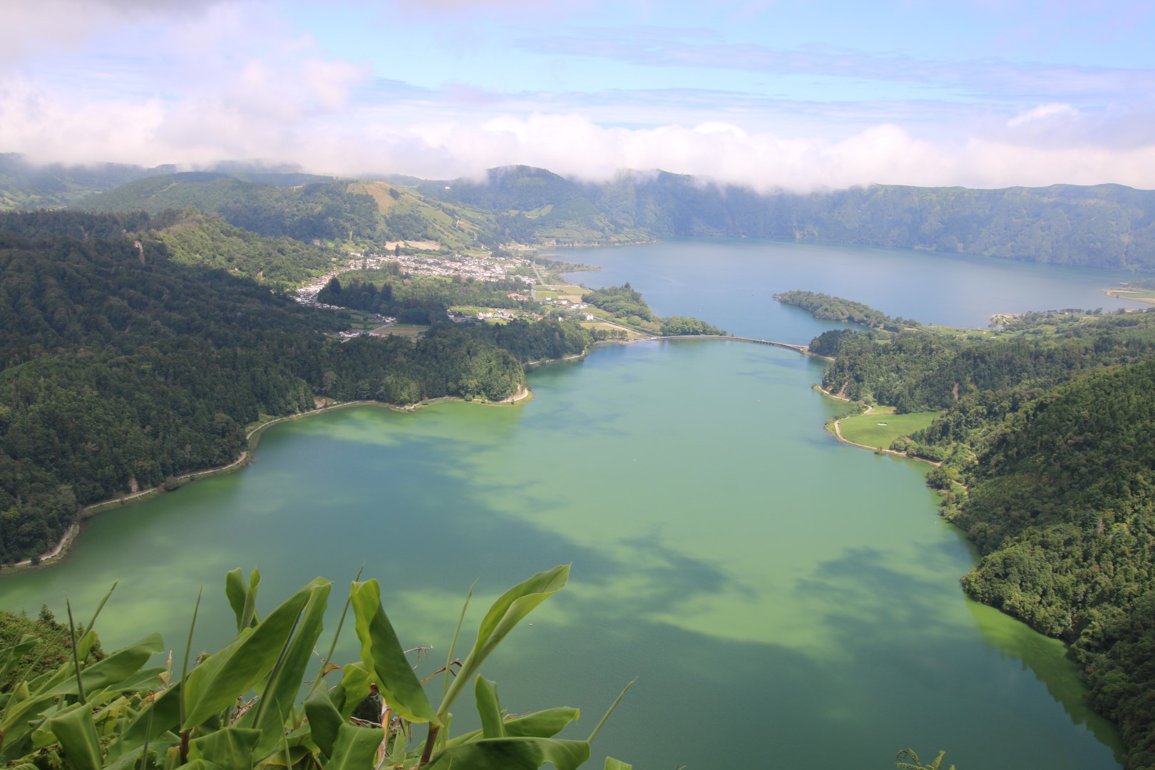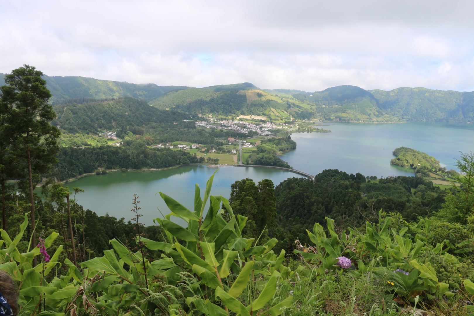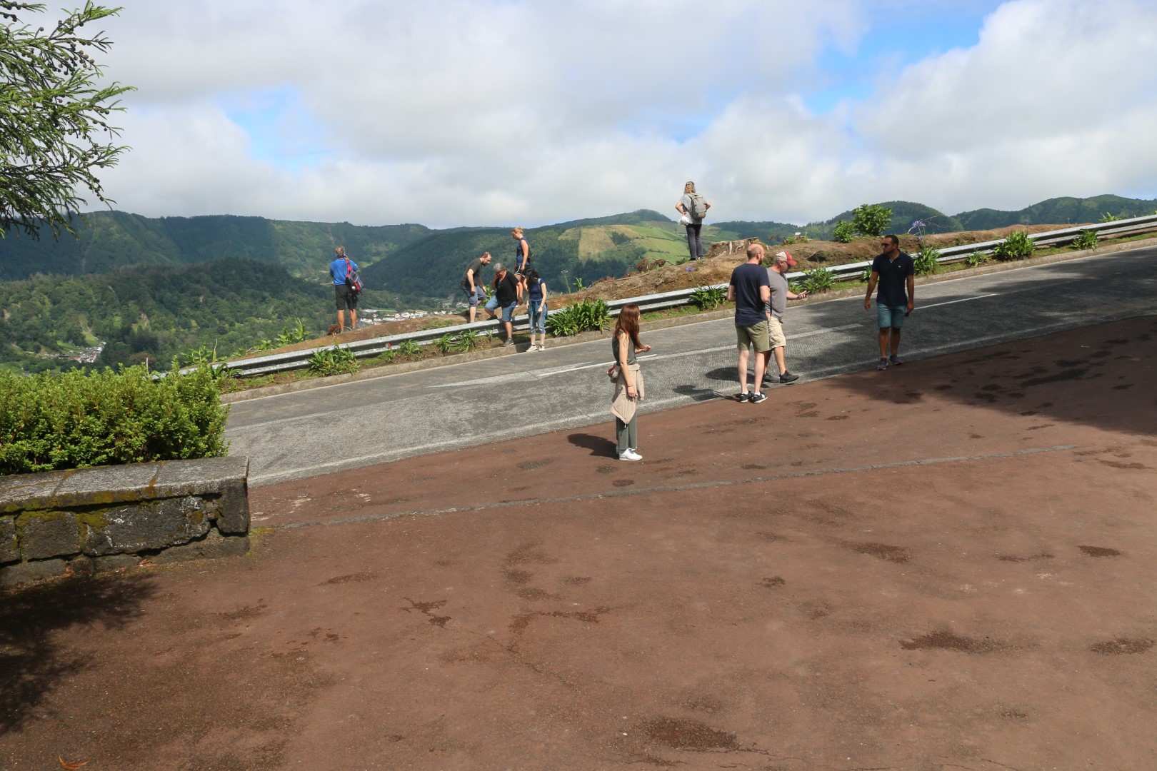 Heute geht es zu den Tränen der Mädchen: Zwei Seen beim Ort Sete Cidades, der eine grün, der andere blau. Busse fahren nicht sooo viele, so muss Michèle in den sauren Apfel beißen: Es geht um 08:25 Uhr los. Wie immer bewundern wir die portugiesischen Busfahren. Mit Affenzahn durch die engsten Dörfer, nur Zentimeter an Dächern und auch gerne mal an einer Leiter vorbei, bei der einer oben steht und die Hauswand malt. Nun – soll der sich doch festhalten, dass der Windzug ihn nicht runter wirft.