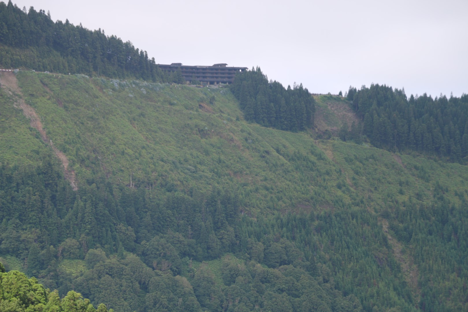 Eine Hotel-Ruine auf dem Grat zieht uns an – nebenbei ist da der beste Aussichtspunkt: Zur einen Seite die Seen von Sete, auf der anderen Seite der Atlantik. In den 80er und 90er Jahren ein beliebtes 5-Sterne-Hotel. Wurde aber irgendwann von den Behörden als Bordell entlarvt. Zur Gerichtsverhandlung erschien niemand. Und im Hotel, ab dem Tag Ex-Hotel, war auch niemand mehr. Nun gibt es in den umliegenden Dörfern wohl in jedem Haus Einrichtungsgegenstände, die mal im Hotel standen….