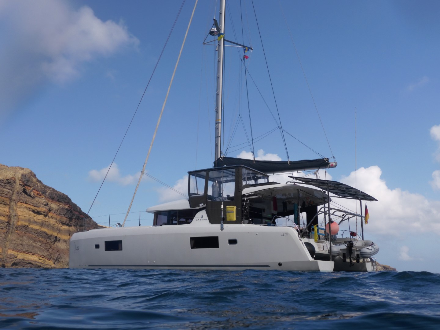 Die langfristig Windvorhersage hatte uns eine kleine Winddrehung auf West voraus gesagt. Die ist inzwischen „kassiert“. Nun sieht es so aus, als wäre Nord-Nord-West das beste, was wir in den nächsten Tagen bekommen. Also ist ein Besuch der Nachbar-Inseln Desertas und Porto Santo nicht so bequem. Lange beratschlagen wird und dann fällt die Entscheidung: Heute weiter vor Anker und ab morgen tüddeln wir die Südküste von Madeira ab. Wie weit jeden Tag, das wird der Wind uns diktieren und die Lust und Laune. Wir können dann ja jederzeit „rechts ran“ und Anker werfen.