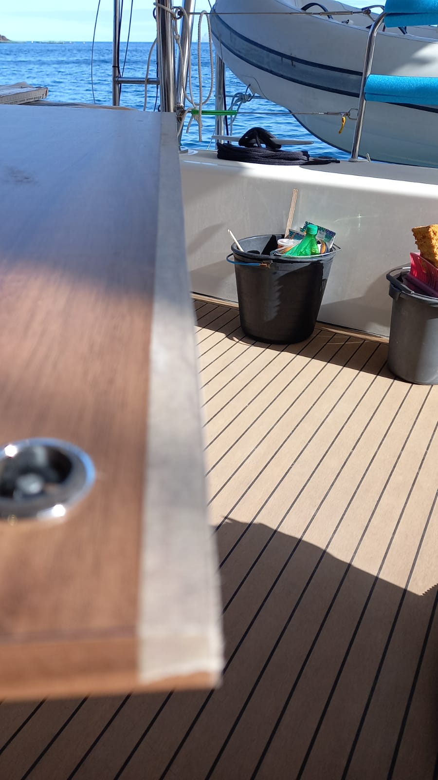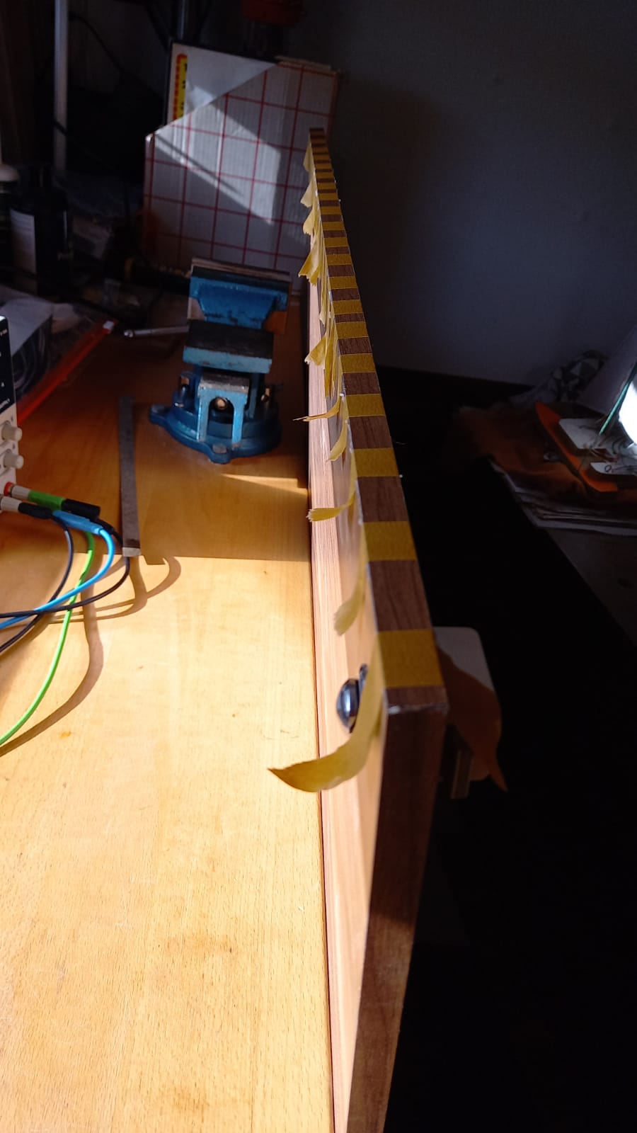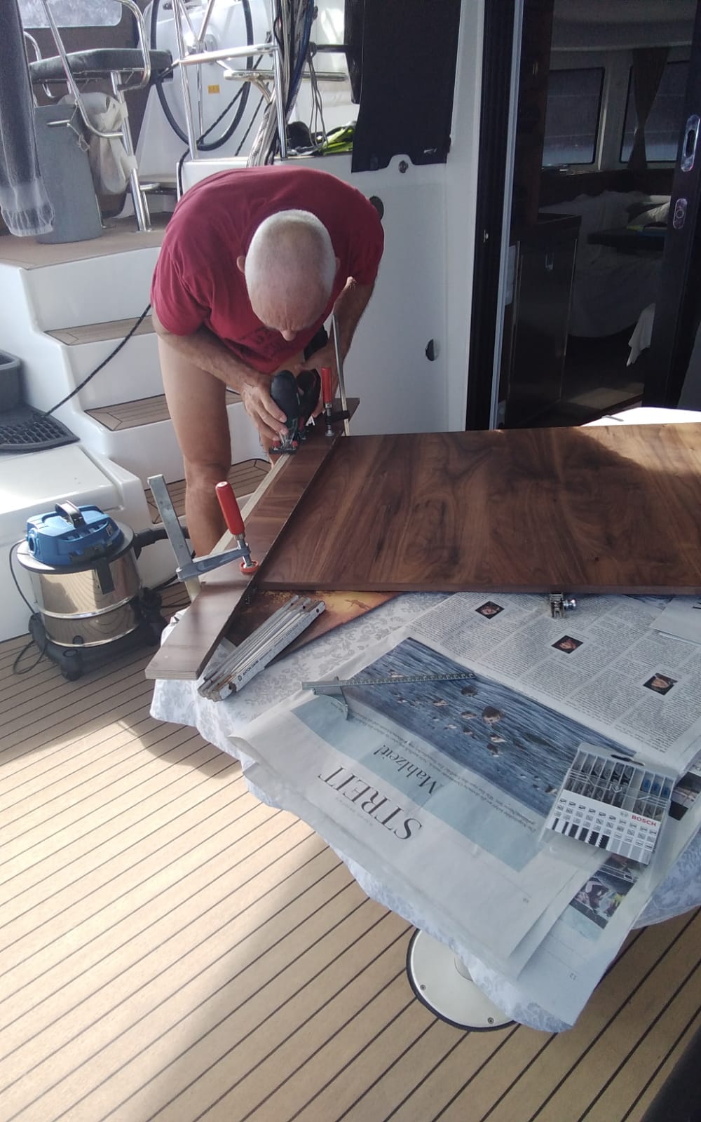 Abends habe ich dann noch ein wenig Peters Arbeiten weiter geführt. Eine Tür auf Maß geschnitten und neuen Umleimer aufgeklebt.