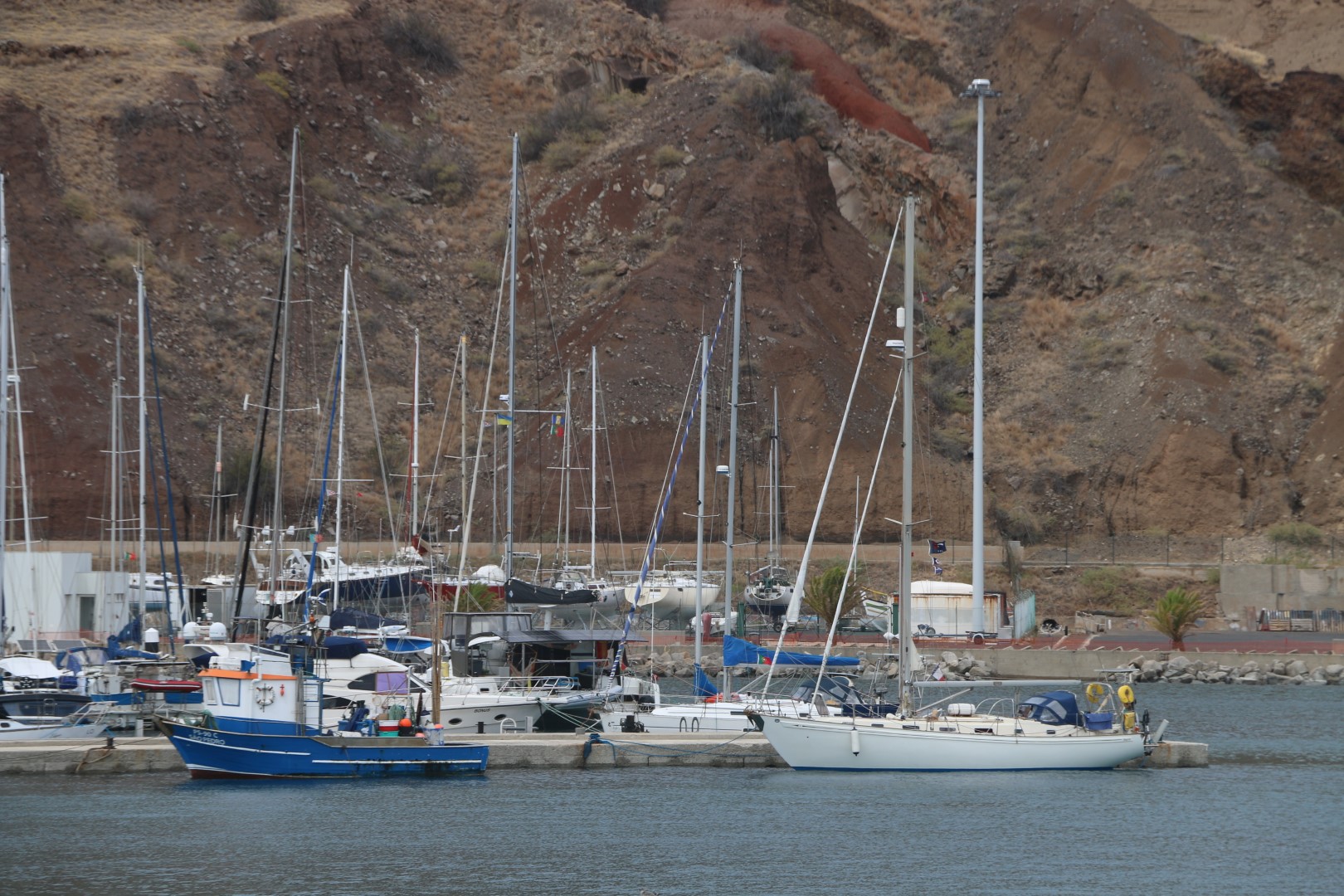 Ach ja – auch berichtenswert: Wir haben Westwind. Alle, die nach Madeira wollen, hängen jetzt hier fest. Und es drückt ein unangenehmer Schwell in die Bucht und damit in die Hafeneinfahrt. Sogar im Hafen schaukeln die Einrümpfer ganz ordentlich. Und damit verziehen sich immer mehr hier in den innersten Hafen und die liegen dann im Päckchen oder an der Mole. Der Westwind bringt auch ne Menge an Wolken. Sonnen-Braten geht anders.