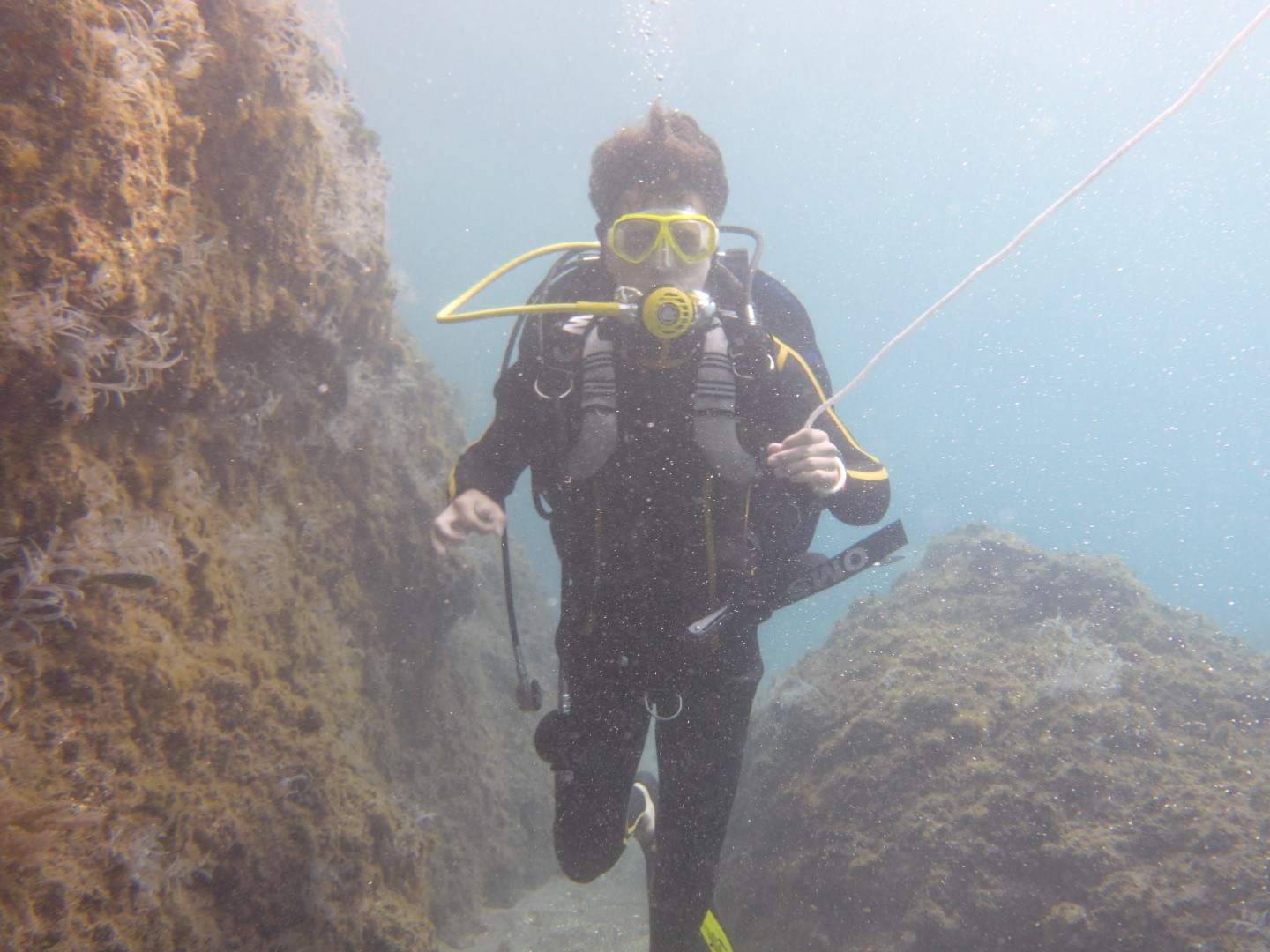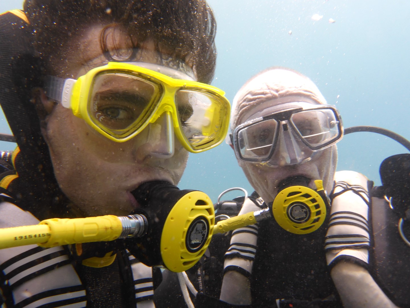 Dann beginnt das Vorbereiten. Der Tauchcomputer muss in Betrieb genommen werden, das Gerät wird angezogen, angepasst, ausgezogen und dann alles von vorne noch mal. Tja – und dann kommt die Sicherheitseinweisung. Es ist zwar nicht sein erster Tauchgang, aber der erste in meinem Verantwortungsbereich. Und da gibt es eben vieles noch mal und auch einiges Neues. Endlich geht’s los. Inzwischen ist es fast 14:00 Uhr….