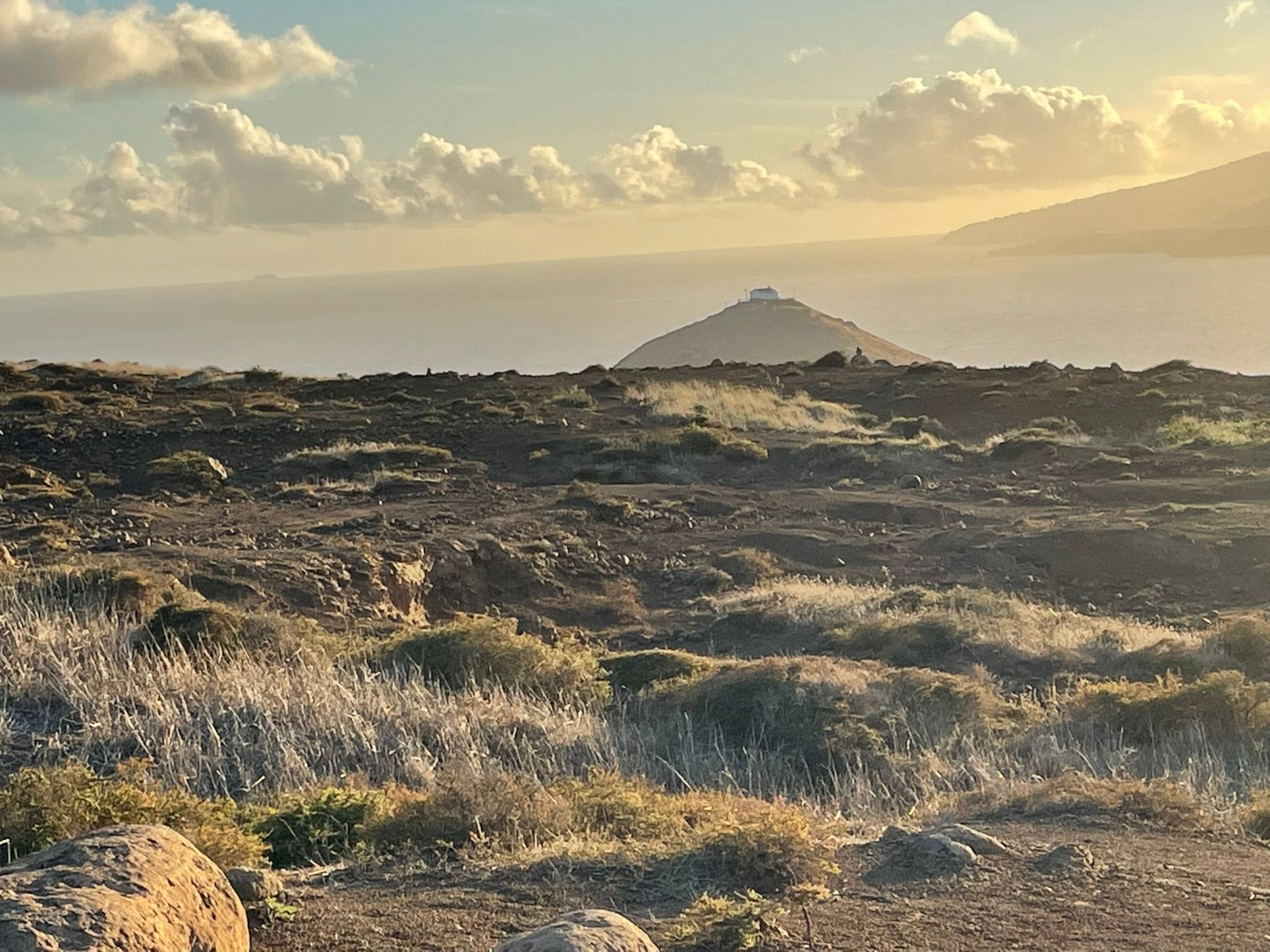 Außen führt uns unsere Wanderung dann auf den Hügel, der QdL überragt, zu einer kleinen Kapelle. Kräftig weht der Wind noch, hier oben ist das sehr zu merken!