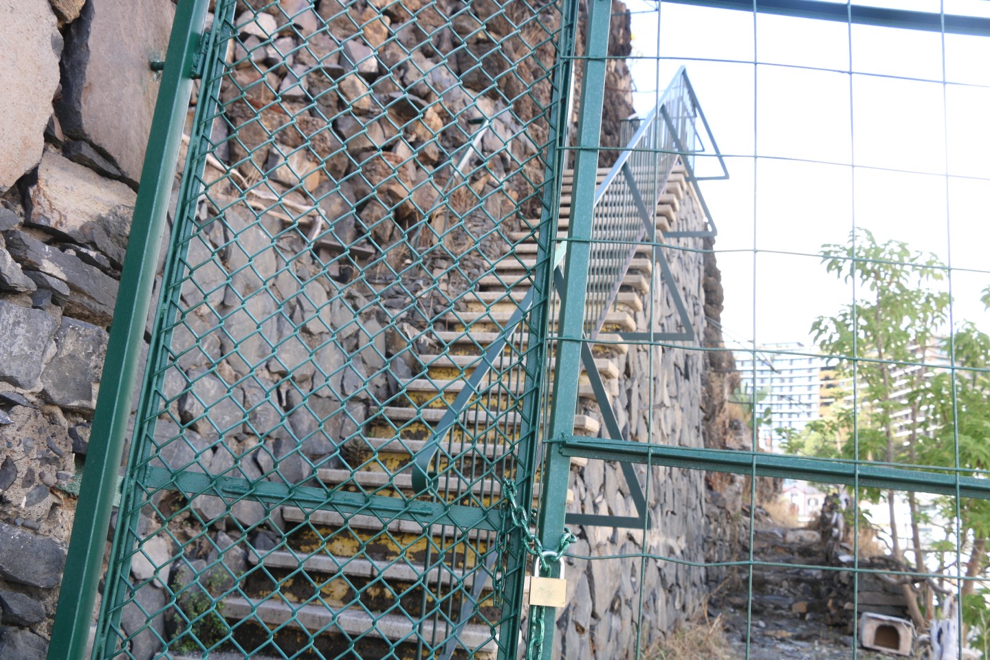 Schlussendlich sind wir dann in einem (sauteuren) Cafe in der zentralen Fussgängerzone gelandet. Da haben wir uns auf ein Getränk und für die beiden ein Nata beschränkt. Lieber noch ein wenig hungrig durch die Gegend laufen! Nächster Stopp: Pontinha – die (selbsternannte) Mikronation vor der Küste von Funchal. Heute: Geschlossen. Lediglich eine Katze bewachte das Anwesen. Und holte sich die gebührenden Streicheleinheiten ab. Gut – dann jedenfalls in den Santa Catarina Park! Die Dampfmaschine, die ich Old Smokey nenne, besichtigen und endlich im Cafe was zu essen bekommen! Mit Thomas ein nettes Sandwich geteilt. Ulrike schlug dann ein Museum vor über die Geschichte von Madeira. Gibt es hier in Richtung auf unser Auto wirklich: Sind wir vorhin schon mit der Seilbahn drüber geschwebt. Madeira Story Centre – für 5 € bekommen wir einen Überblick von der Entstehung und Besiedlung bis zur modernen Entwicklung von Madeira. Die Interaktivität ist begrenzt, aber laut beworben…