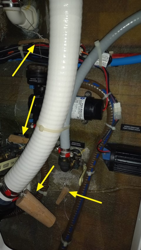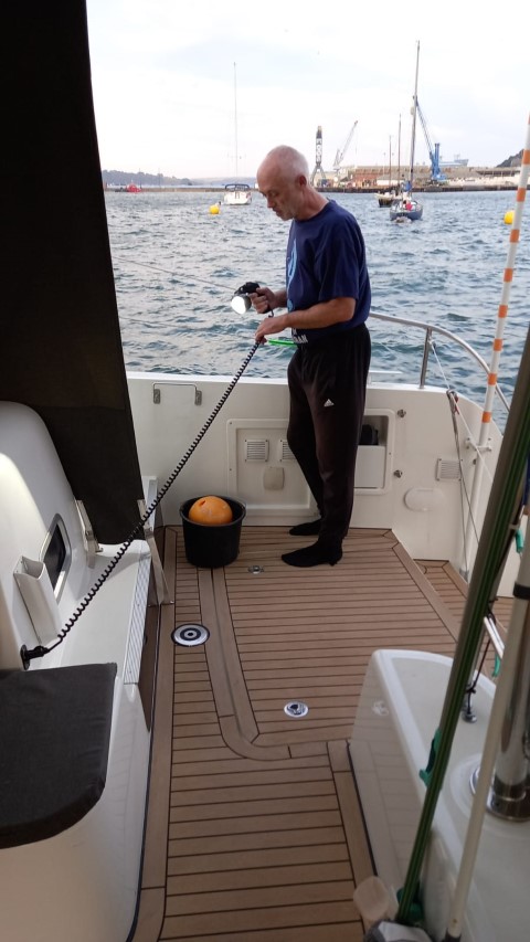 Und eben auch Sicherheitschecks. Dabei werden viele Punkte abgefragt und ich musste mit meinem Handy übers Boot laufen und zeigen, was wir wie wo haben. Und dann kommen Sachen und Hinweise, an die ich so nicht gedacht hätte. So war ein Punkt, dass an jedem Außenhaut-Durchbruch ein Stopfen hängen soll. Grundsätzlich hätte ich schon ein paar Stopfen dabei gehabt, aber nun bestand der Druck, an jeden Durchbrunch einen zu hängen.