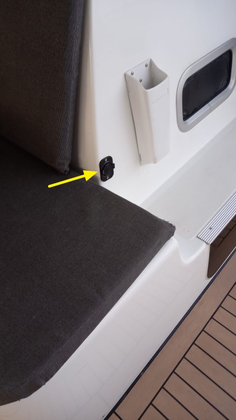 Eine starke Such-Leuchte, die kabelgebunden betrieben sein muss. Das hätte ich alleine so nicht gemacht. Wir haben ja eine superstarke Lampe. 5.000 Lumen - das ist schon eine Sache. Aber die ARC besteht auf "kabelgebunden". So haben wir eine zweite Lampe. Die brauchte aber eine Zigarettenanzünder-Steckdose im Steuerstand. Und da so ein Katamaran recht breit ist, habe ich gesagt, auch an Steuerbord brauchen wir ein Steckdose dafür. Im Steuerstand war das keine große Sache: Loch bohren, Steckdose einsetzen und anklemmen. Da gab es ja schon 12V.