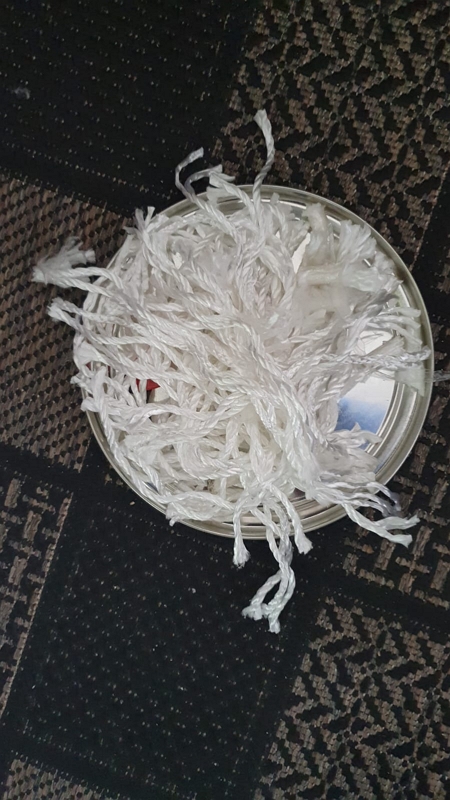 Am Freitag war er nicht im Laden. Und der Festmacher wohl auch nicht. Das zog sich dann bis in die zweite Woche. Donnerstag sehe ich ihn in der Fußgängerzone in einer Bar. Ach ja - er hätte den Tampen da, also im Laden. Ob ich nachher vorbei kommen wolle. Nein - ich bin jetzt ja gerade da gewesen. Na gut - es sind kaum 50 Schritt bis zum Laden und so reißt er sich von seinen Kumpelns los und wir ziehen in den Laden. Da liegen dann wunderbar anzufassen 30 Meter Festmacher für mich.